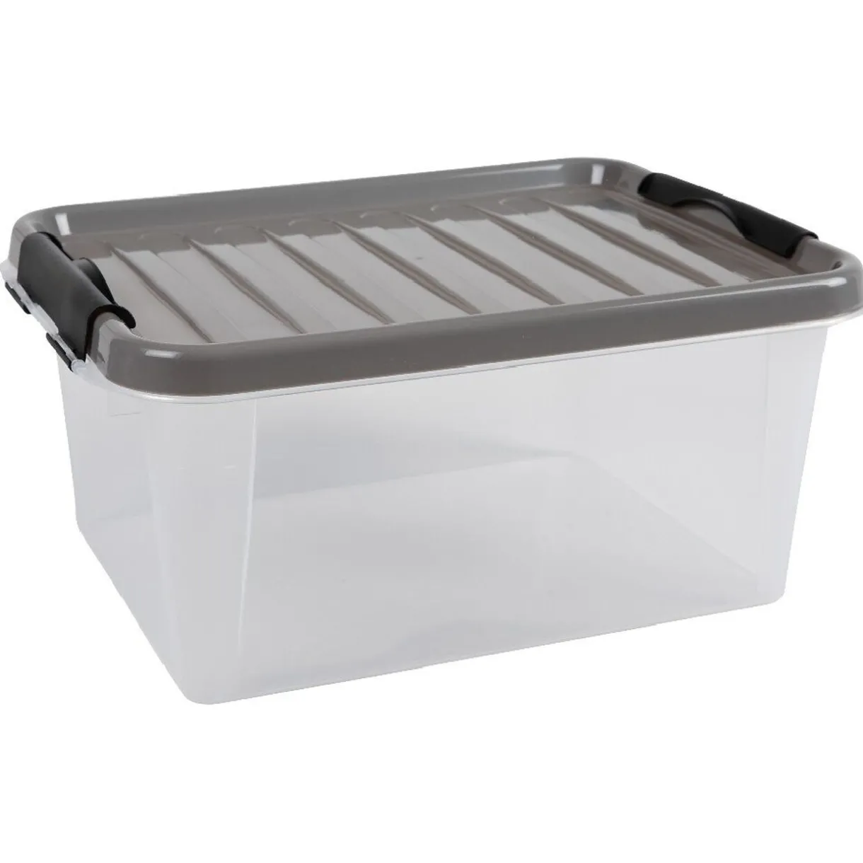 Ce produit existe en 3 coloris, coloris aléatoire selon disponibilité en magasin.Avec clips de fermeture- Couleur : Boîte transparente avec couvercle bleu, gris ou vert – Dimensions :38 L x 28,5 P x 18 H cm- Matière(s) :Polypropylène