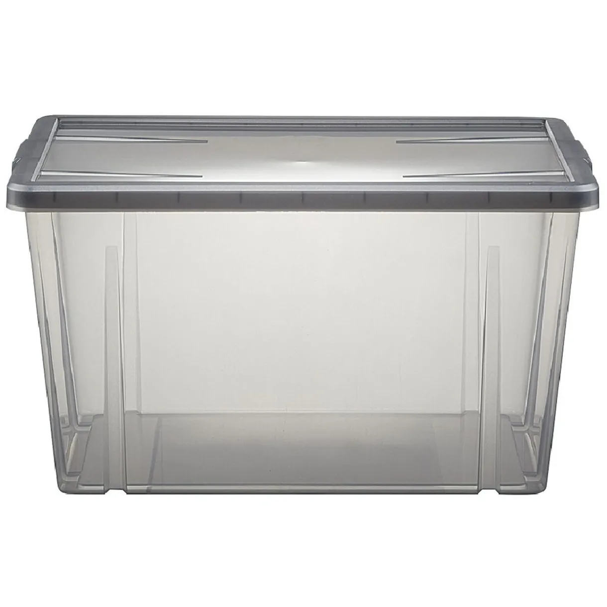 Boîte de rangement noir transparent avec couvercle.