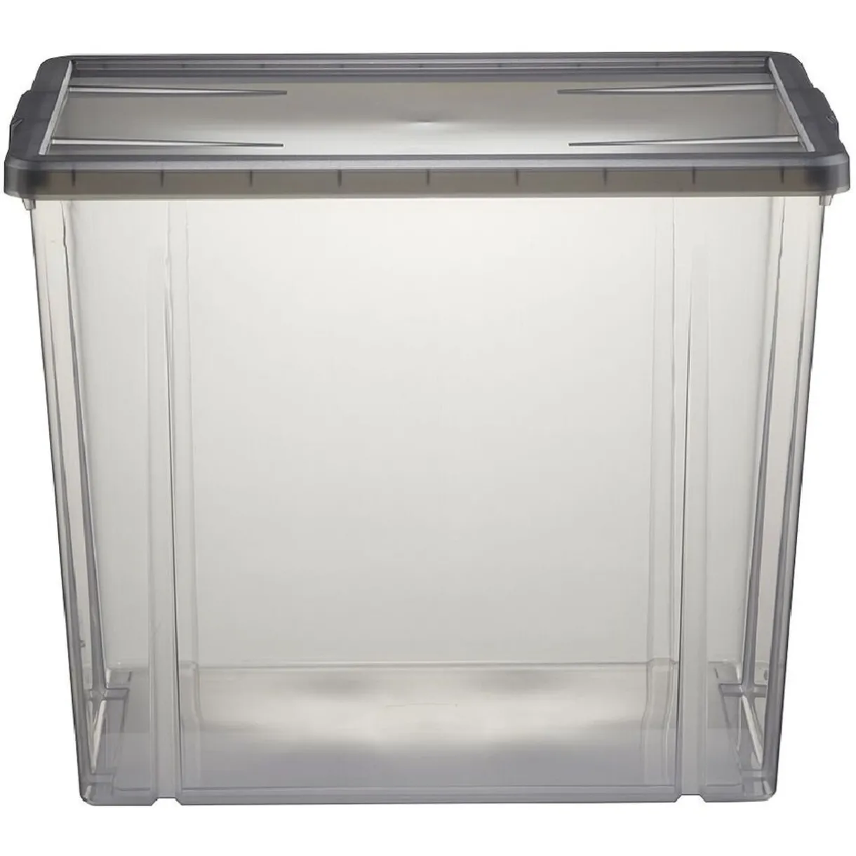 Boîte de rangement en plastique gris fumé d’une capacité de 82L. Résistante et polyvalente, convient pour l’organisation et le rangement de toutes vos pièces.