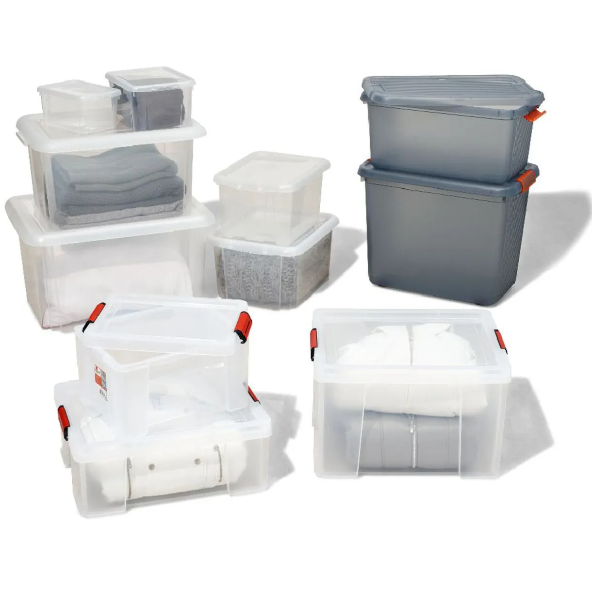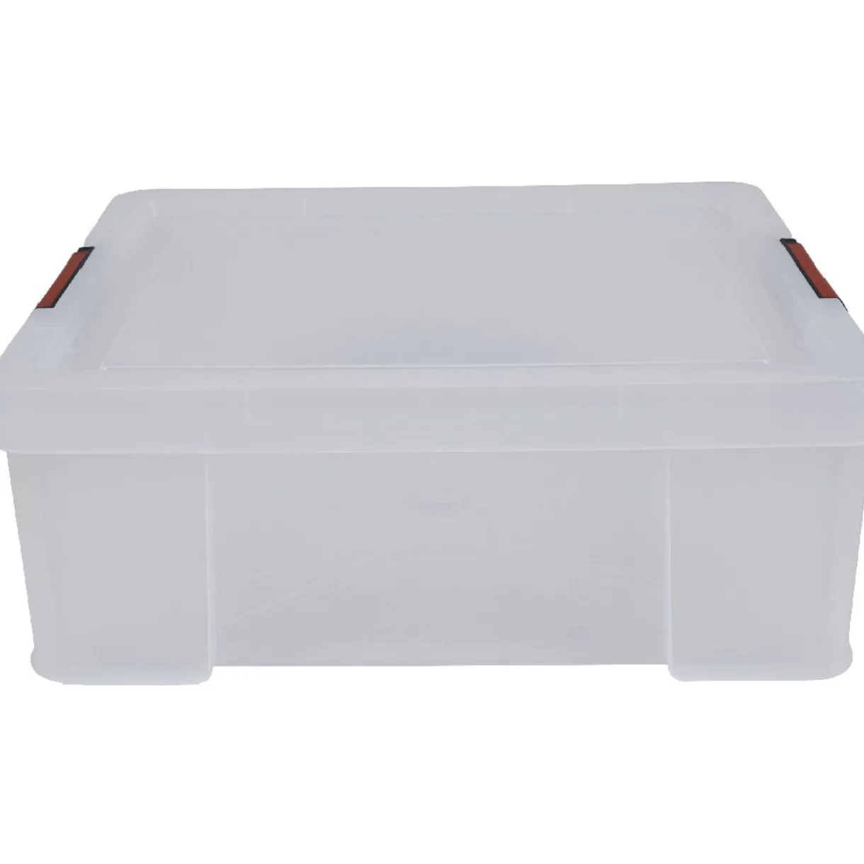 Boîte de rangement transparente avec couvercle à fermeture par clips sécurisée.