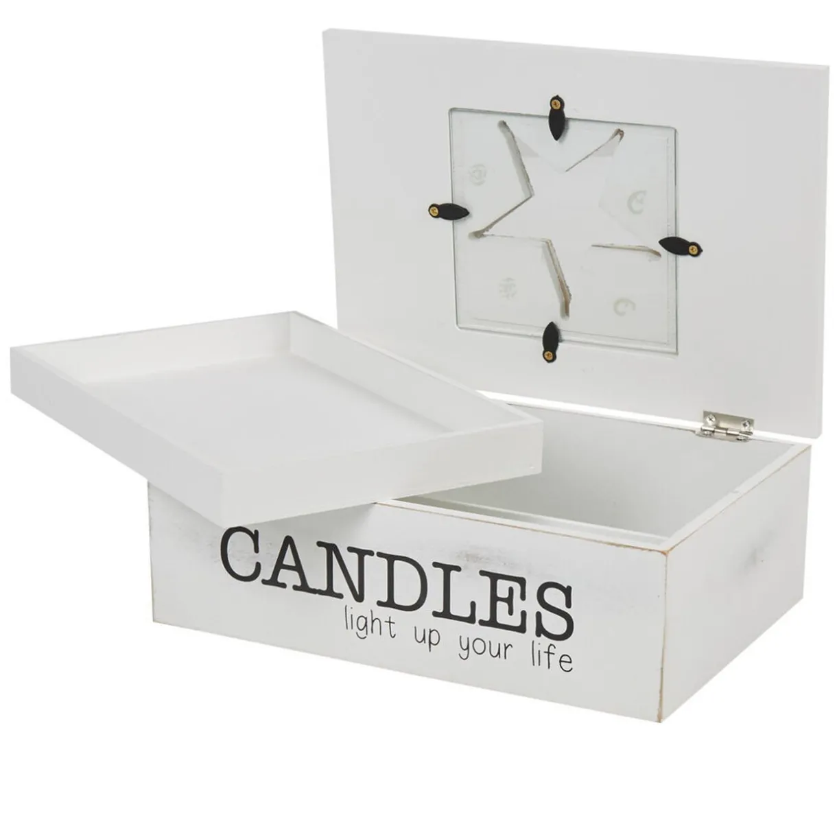 Boîte décorative design Candles en bois blanc, dim. 16,5x24x8,3 cm.