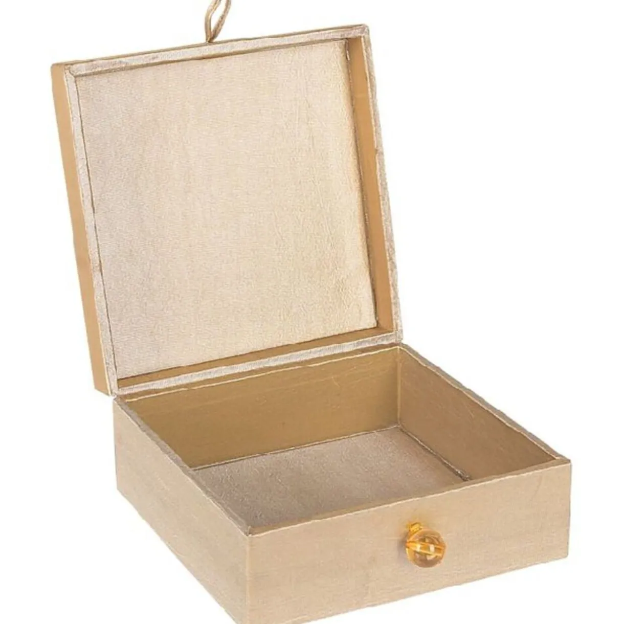 Boîte carrée en tissu imprimé, d’une dimension de 15x15x6.5 cm.