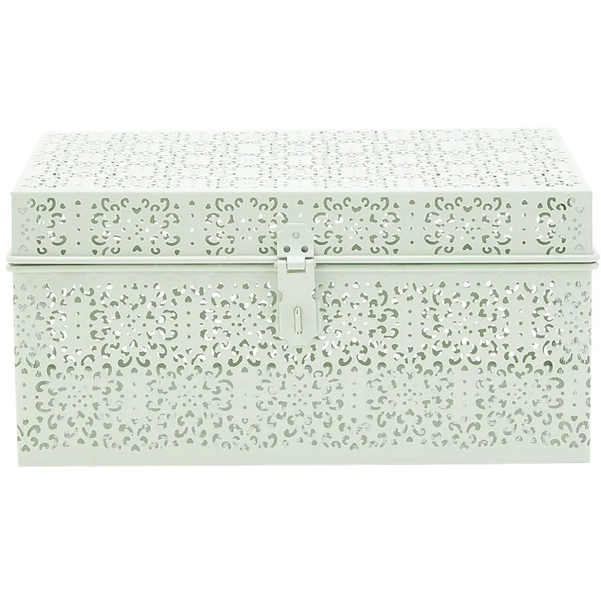Cette mini malle en métal à motif ajouré effet dentelle sera parfaite pour mettre à l’abri vos bijoux et autres précieux accessoires.