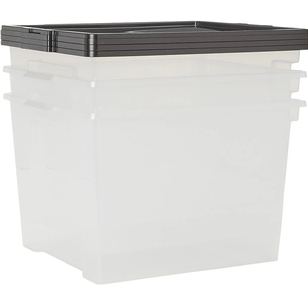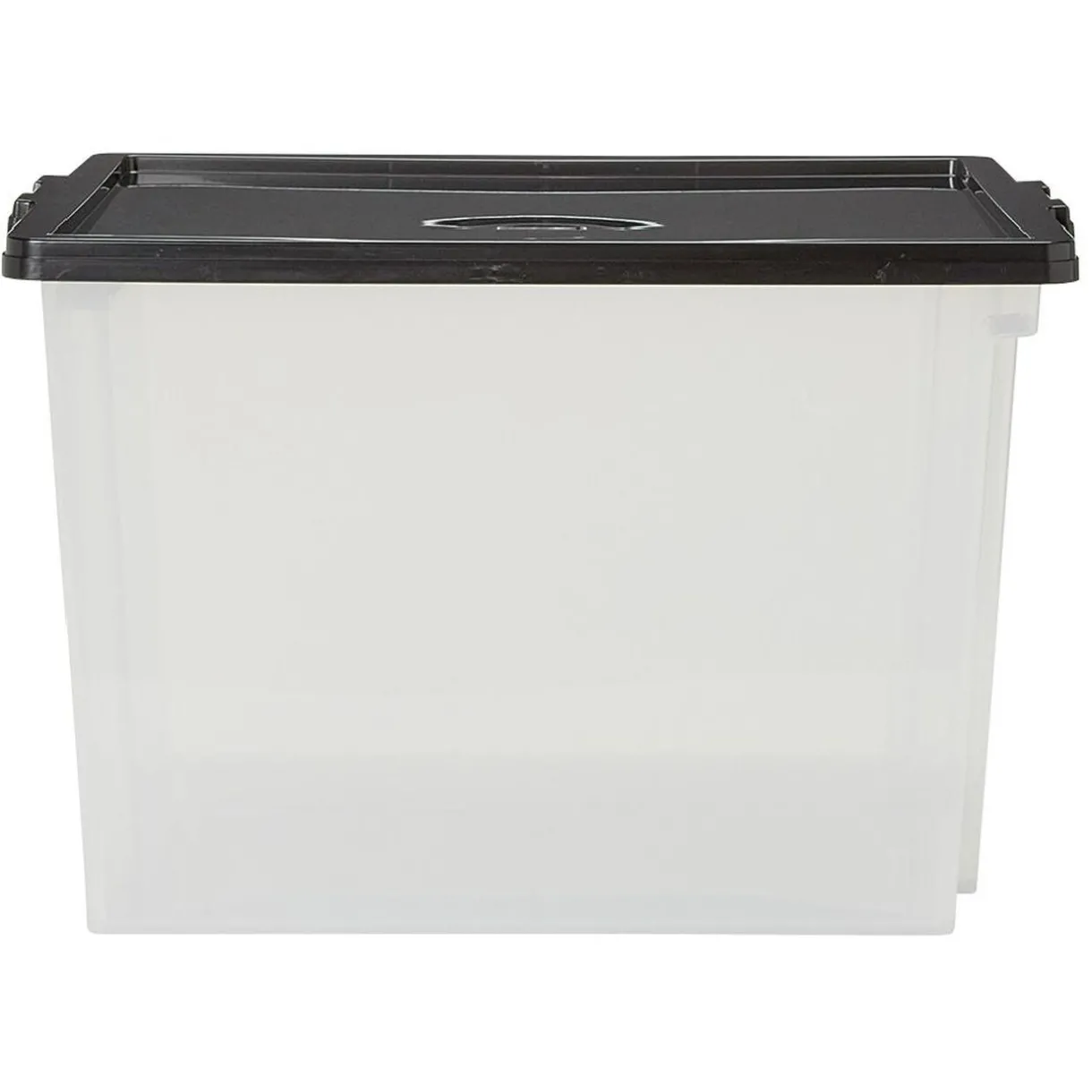 Boîte transparente et noire en plastique pour faire du rangement dans vos affaires.