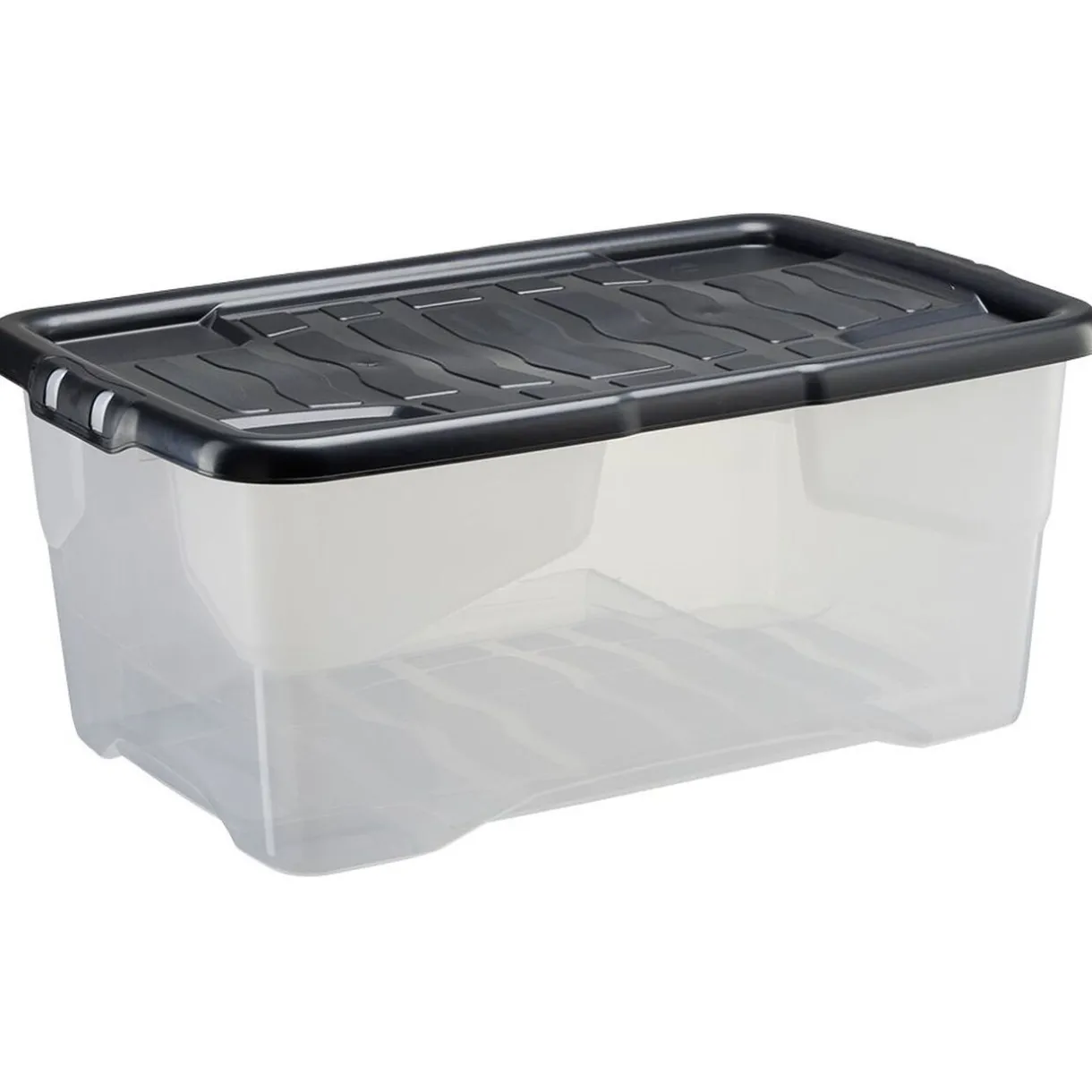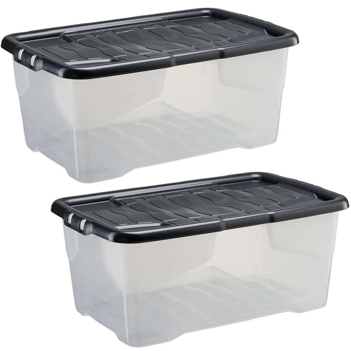 Lot de 2 boxs d’une contenance de 42 litres avec couvercle noir, parfaites pour optimiser votre rangement et protéger vos affaires de la poussière.