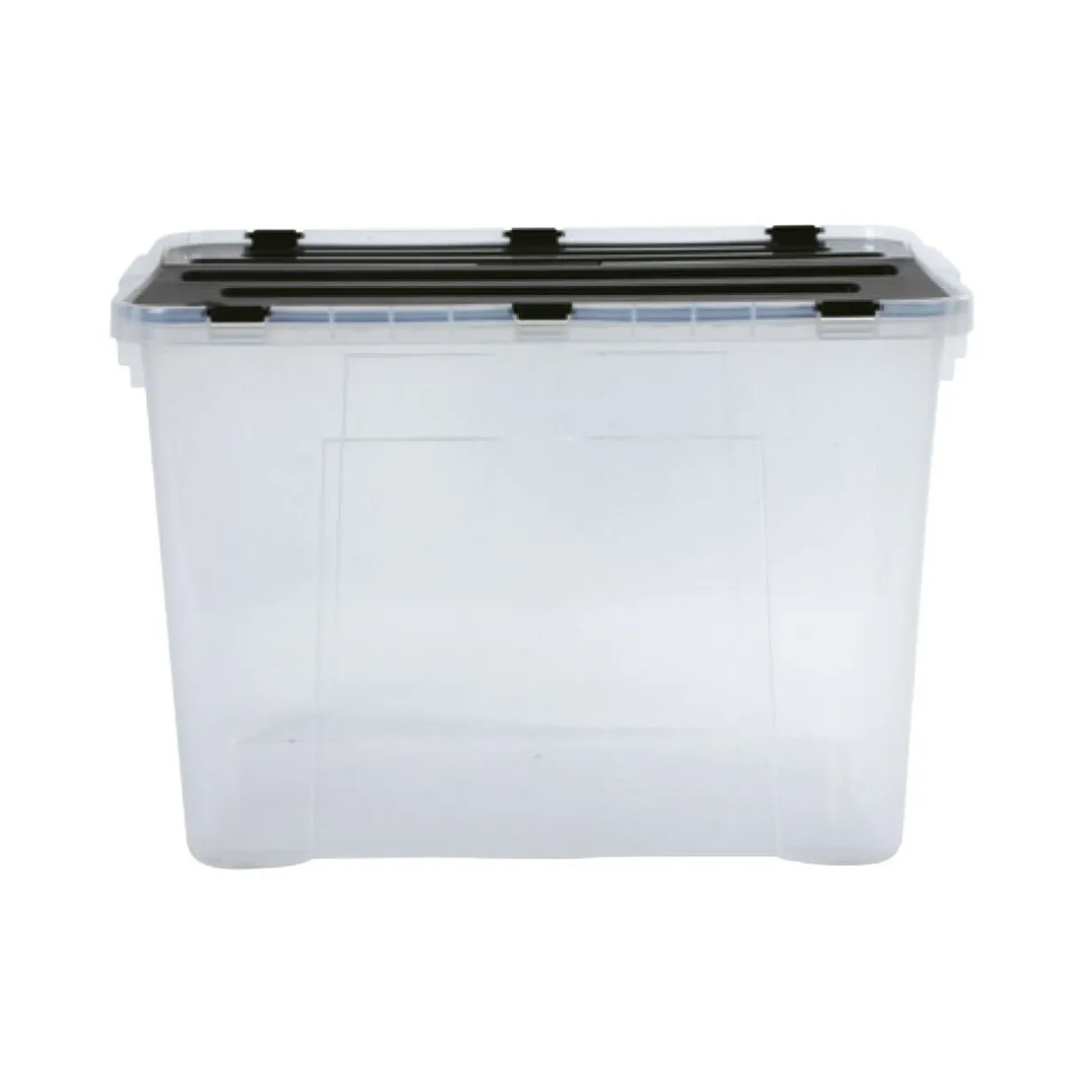 Box de rangement 100 L, dim. 60x45x50 cm, plastique. Couvercle intégré 2 volets.
