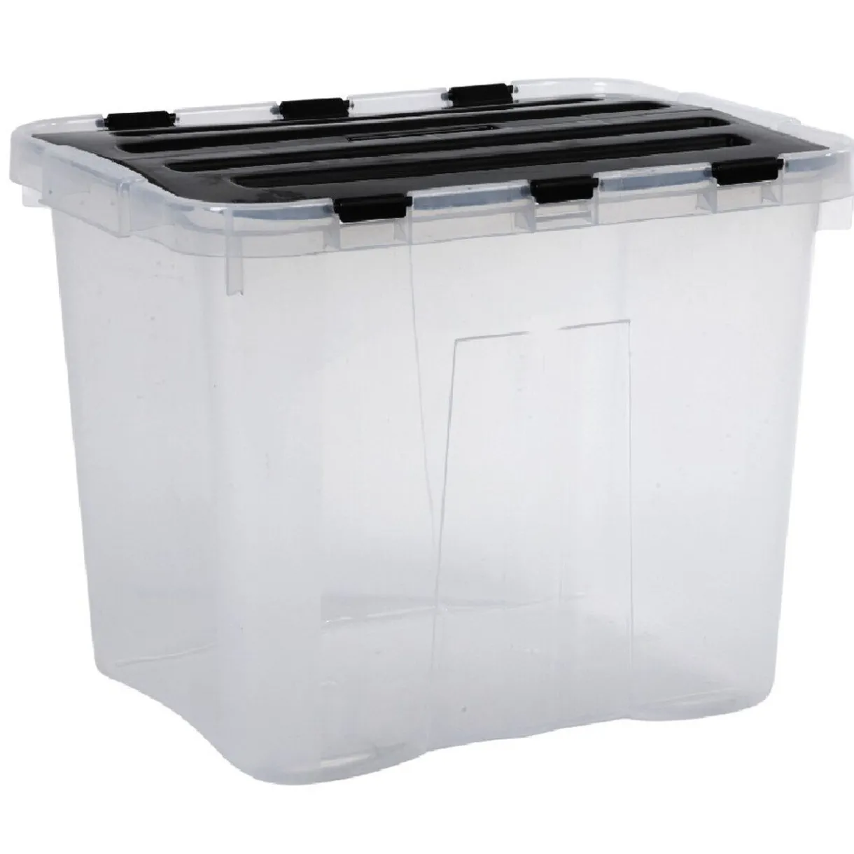 Box de rangement 24 L transparent avec couvercle noir, dim. 40x30xh.30 cm, plastique.
