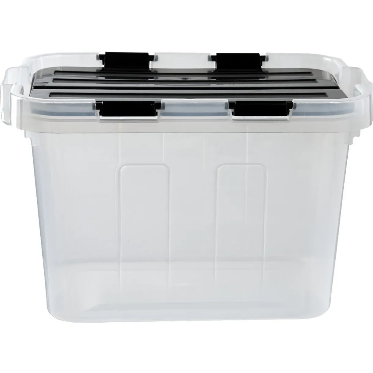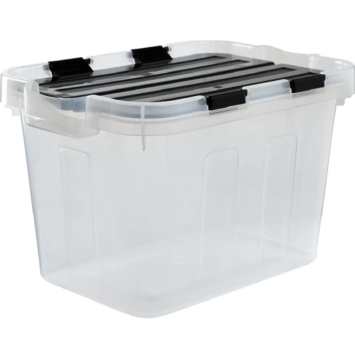 Optimisez votre rangement avec cette box en plastique transparent doté d’un couvercle noir fractionnable.