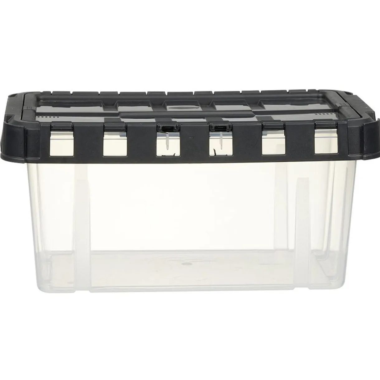 Optimisez votre rangement avec cette box en plastique transparent dotée d’un couvercle noir fractionnable. D’une capacité de 5 litres, vous pourrez y ranger aussi bien des produits ménagers, que des jeux, accessoires ou vêtements hors saison.