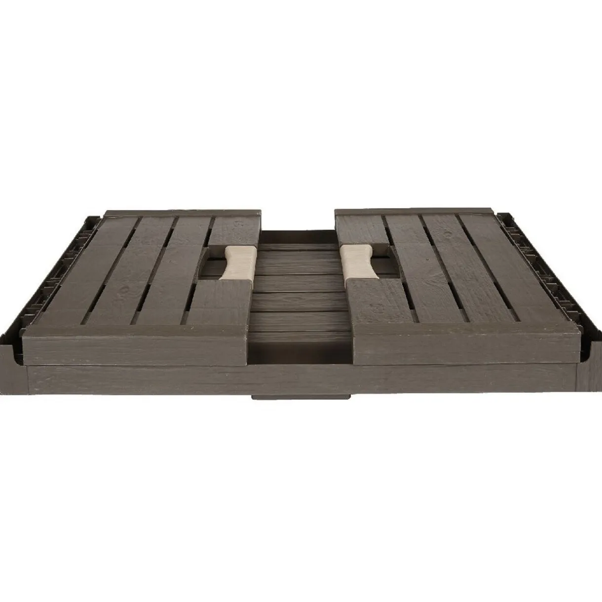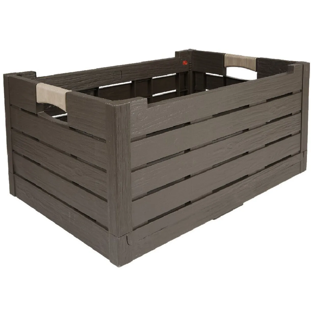 Casier pliant marron en plastique finition bois.