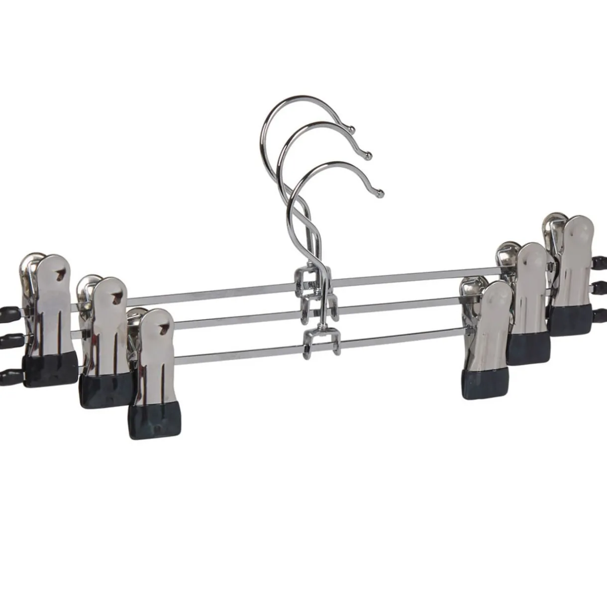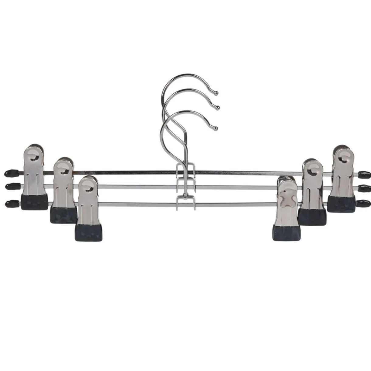 Suspendez vos vêtements avec soin grâce à ce lot de 3 cintres à pinces en métal.