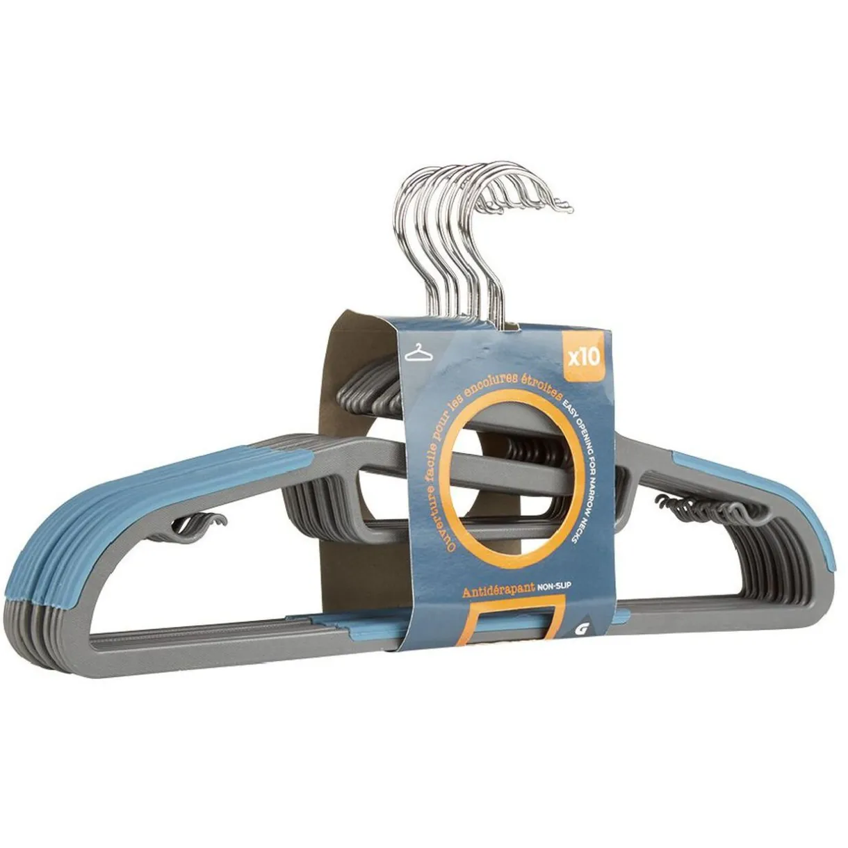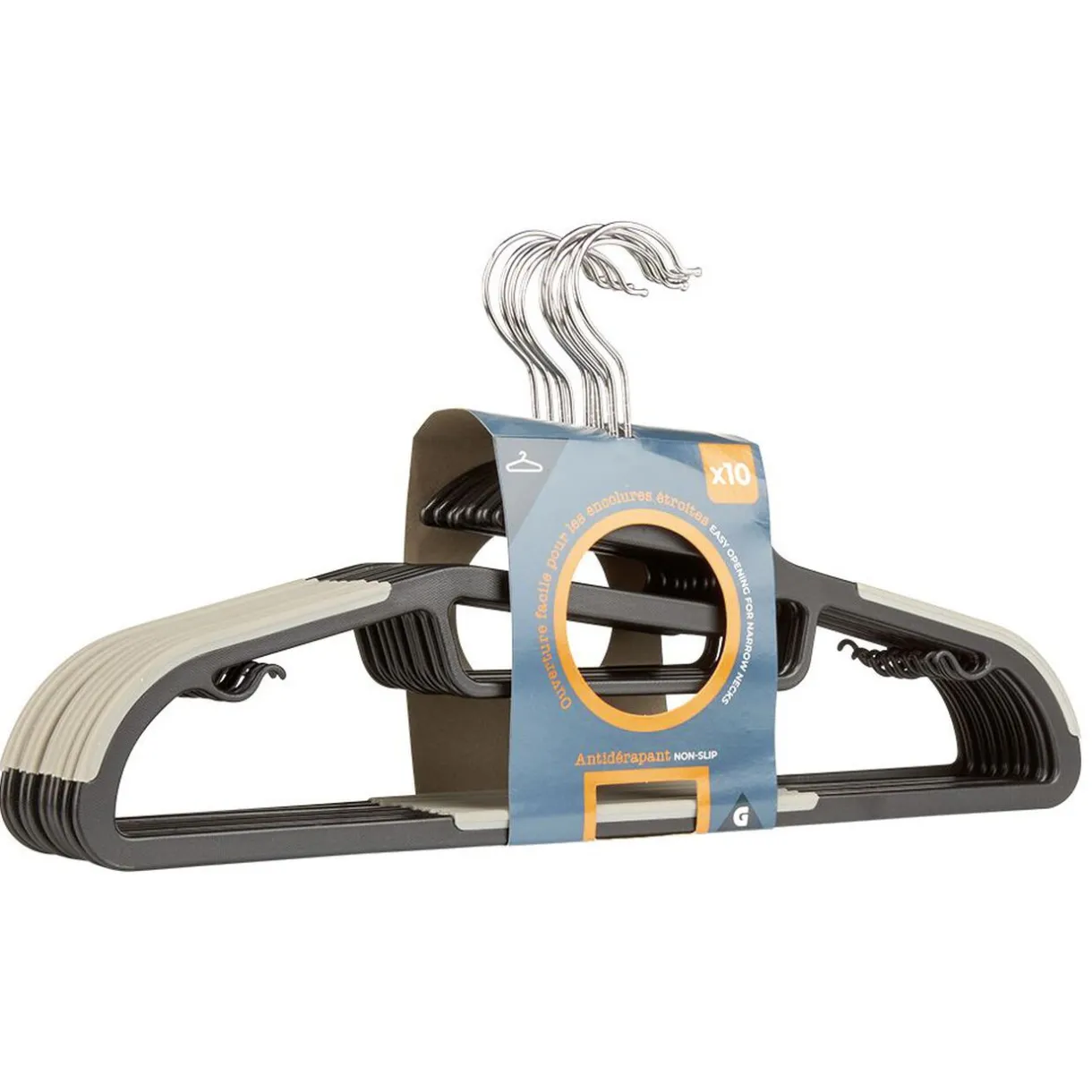 Lot de 10 cintres antidérapants avec ouverture facile pour les encolures étroites.