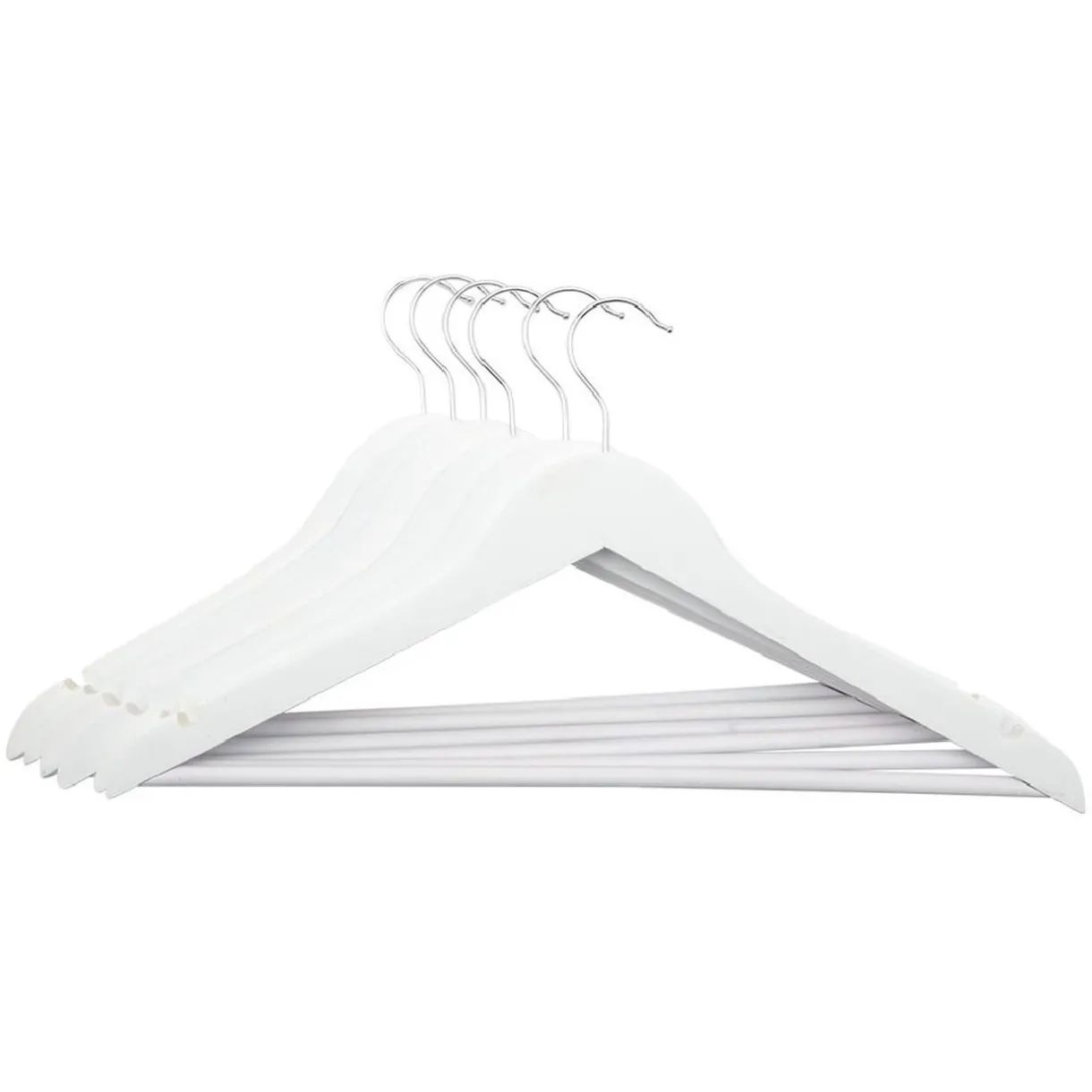 6 cintres en bois blanc avec accroche en métal pour suspendre vos vêtements.