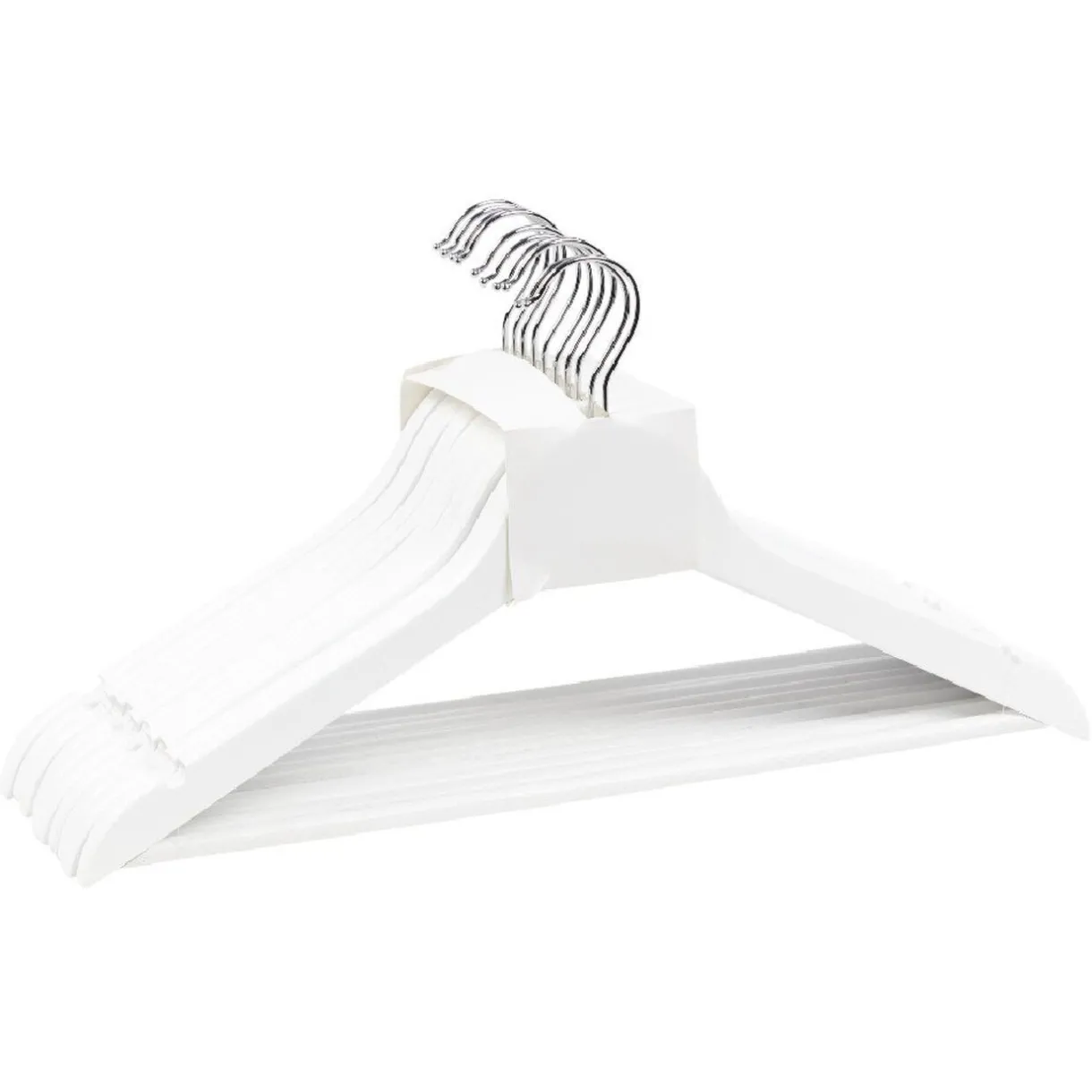 Le lot de 10 cintres en bois existe en noir ou blanc, selon disponibilité.