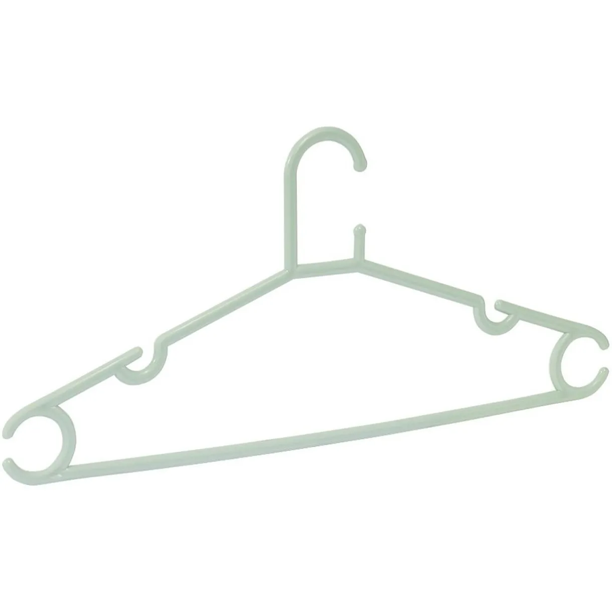 Ce lot de 5 cintres résistants en plastique vert avec encoches à bretelles et barre porte-ceinture est idéal pour disposer vos vêtements et accessoires.