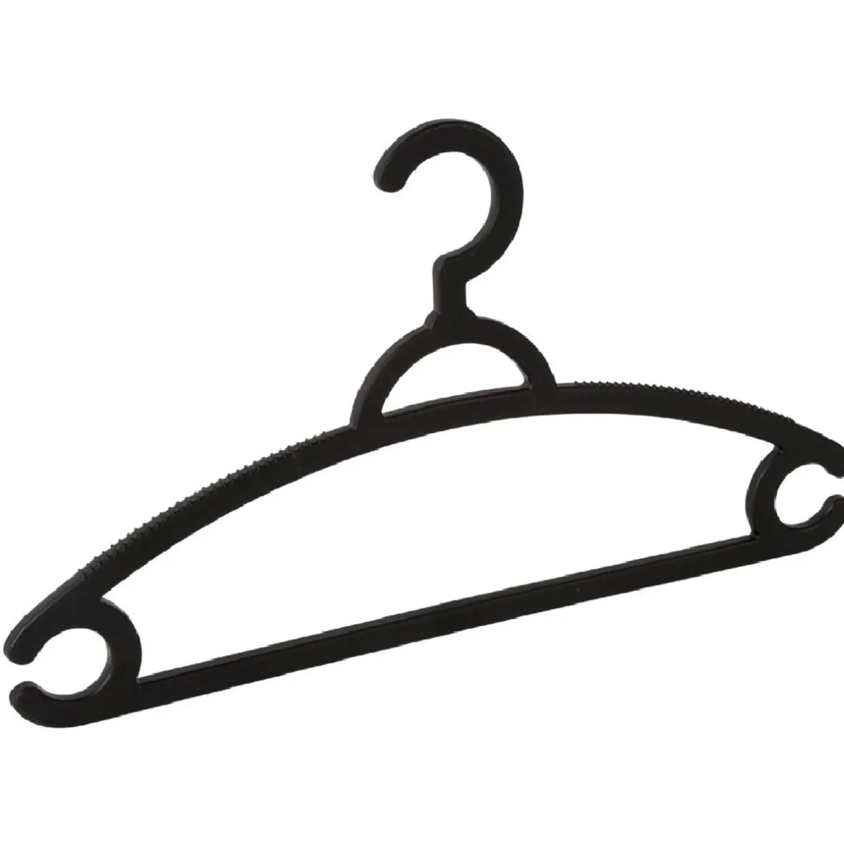 10 cintres noirs en plastique, dim. 41×23 cm.