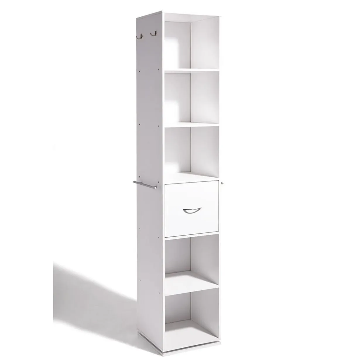 Colonne de salle de bain blanche rotative gamme Nathan, dim. 35x35x180 cm, structure panneau de particules, finition papier décor.