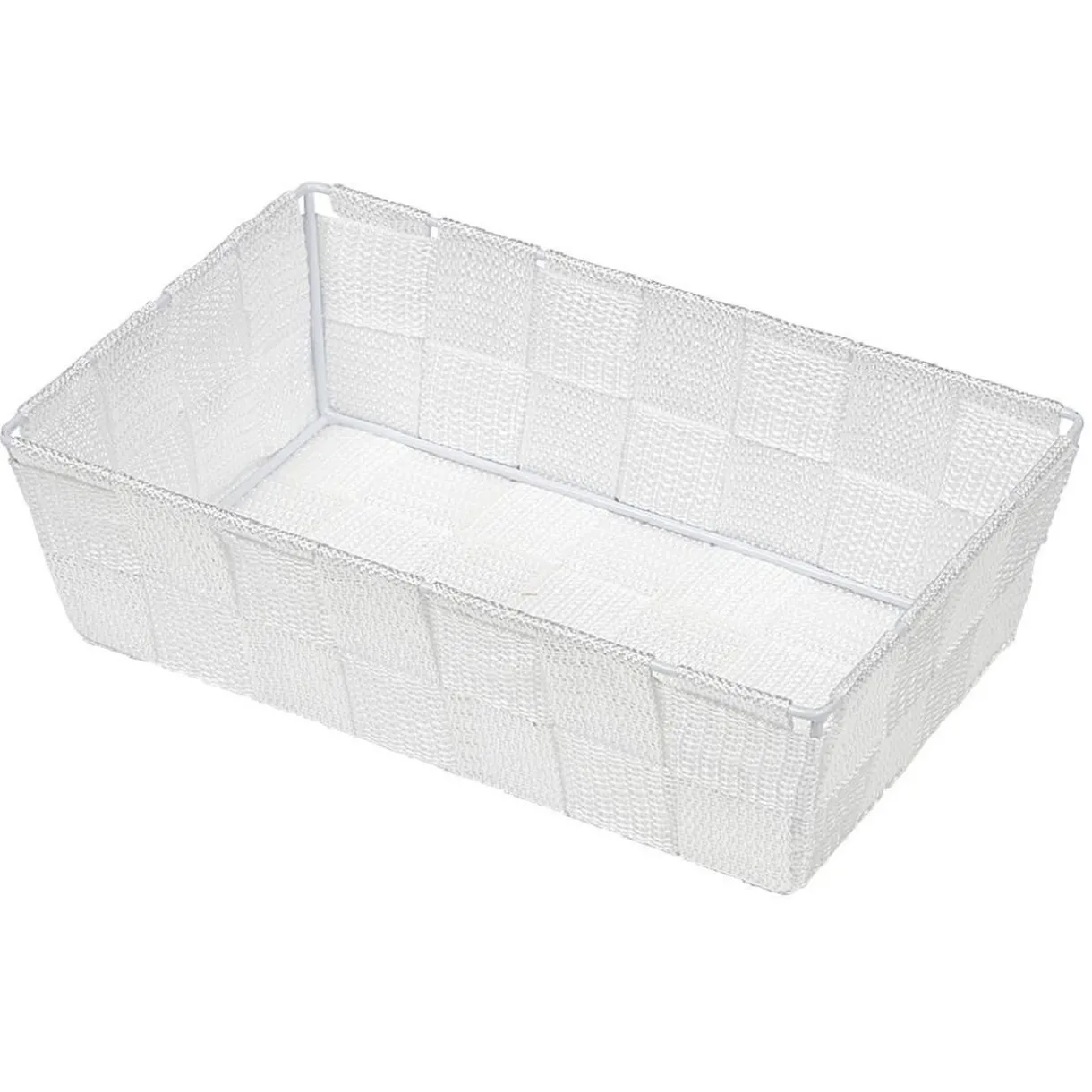 Corbeille en tissu synthétique façon osier tressé de forme rectangulaire pour apporter un côté naturel à votre espace de vie.