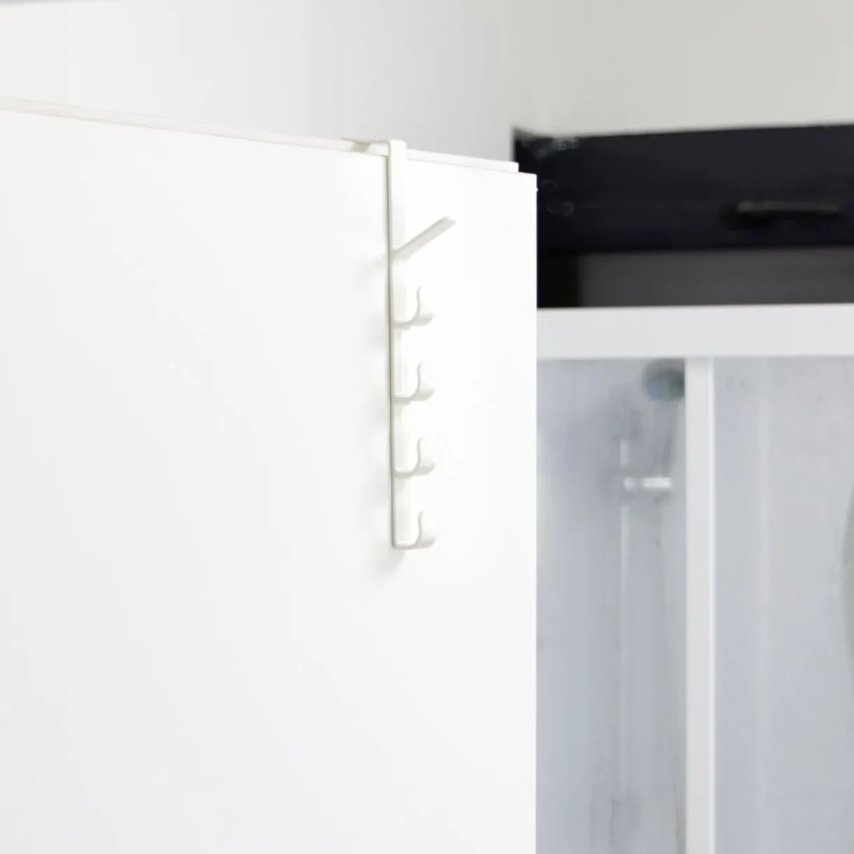 Optimisez votre espace intérieur avec cet ensemble de 5 crochets verticaux à positionner sur la tranche du haut de la porte.