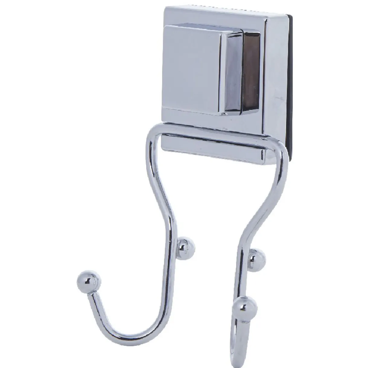 Optez pour ce double crochet à ventouse en métal gris pour suspendre serviettes, gants et autres accessoires de toilette dans la salle de bain.