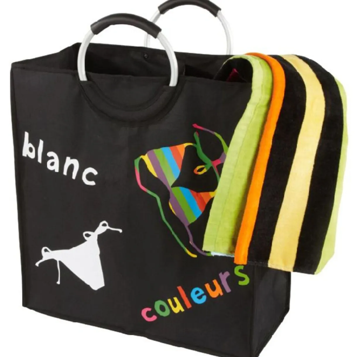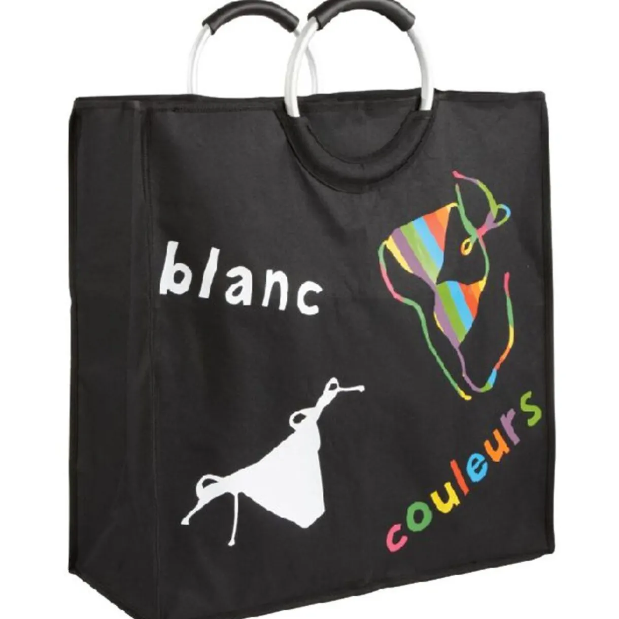 Double panière à linge dim. 51x22x53 cm, polyester, poignées plastique.