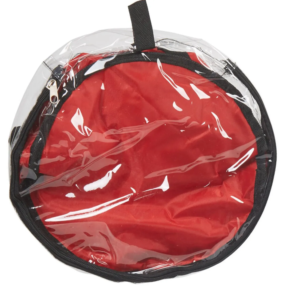 Housse de rangement pour guirlande électrique de couleur rouge et noir.