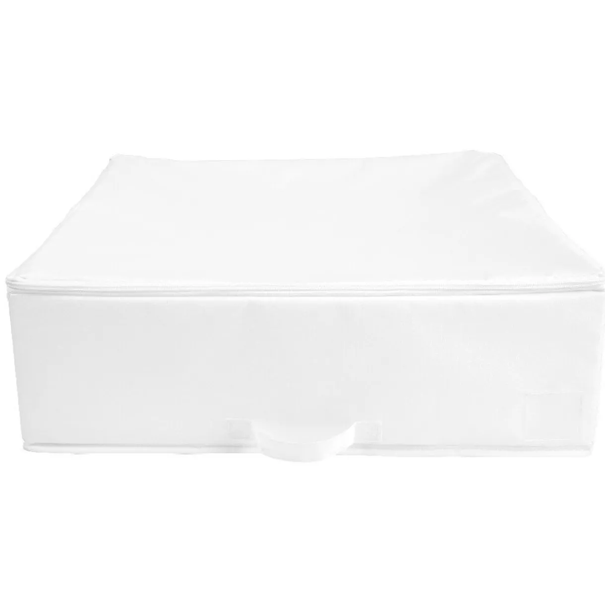 Housse de rangement rigide en tissu synthétique blanc, parfait pour y entreposer vos vêtements d’hiver et couvertures l’été !