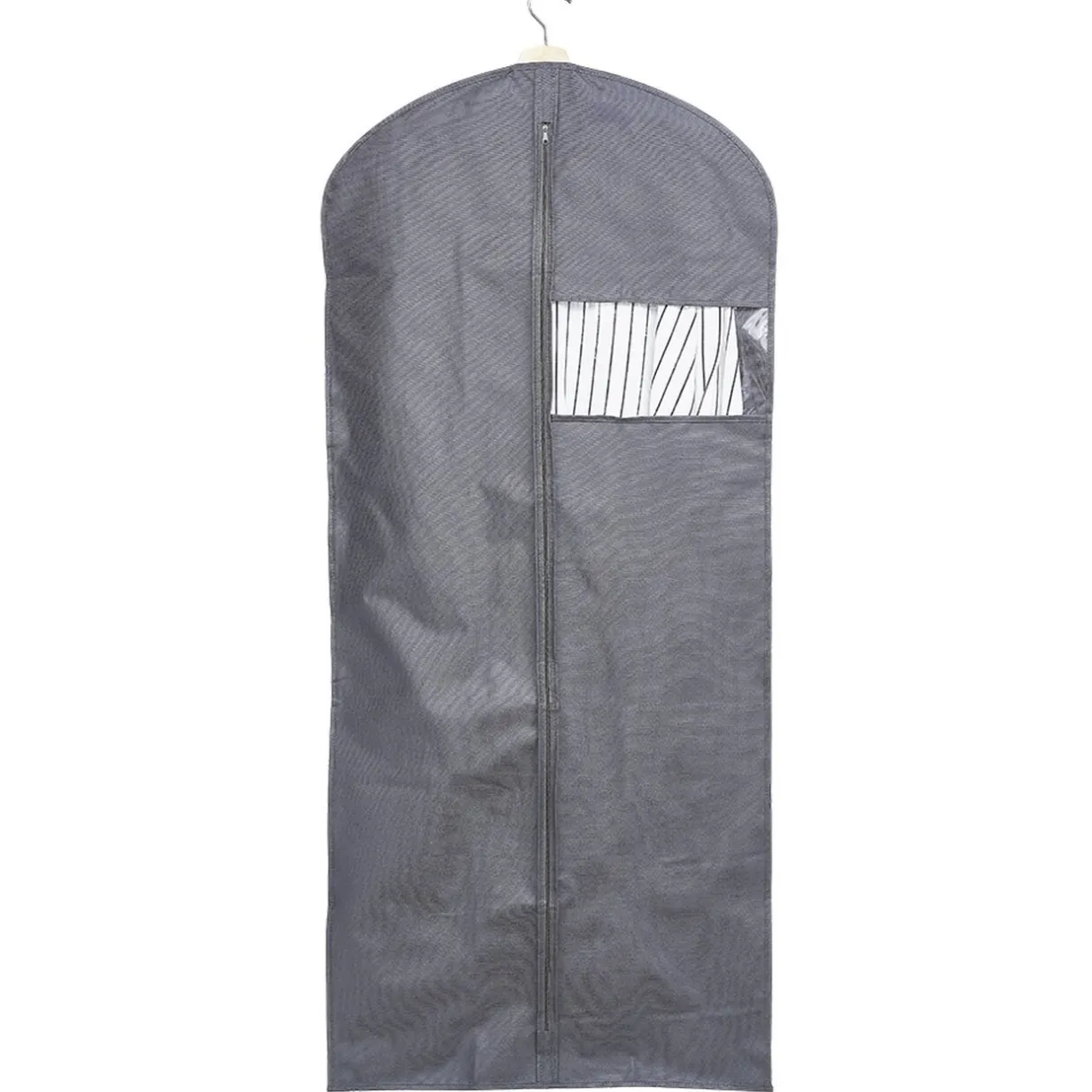 Housse pour tringle à vêtement en polyester gris. Idéale pour stocker vos robes, vestes ou costumes à l’abri de la poussière mais aussi pour transporter vos vêtements en voyage ou au pressing sans les abîmer.