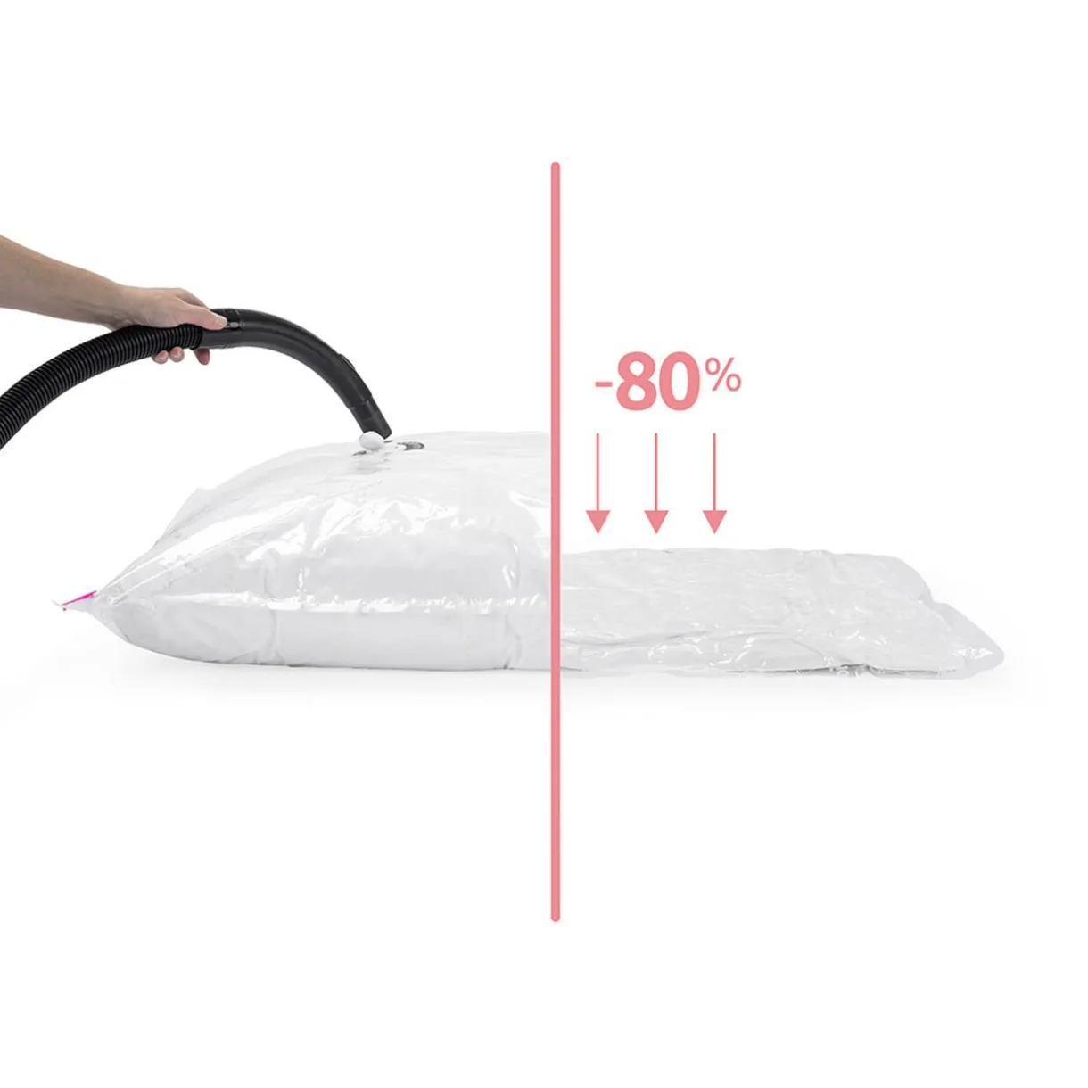 Gagnez jusqu’à 80% de place dans vos placards et armoires en chassant l’air de ces sacs de rangement sans endommager vos textiles.