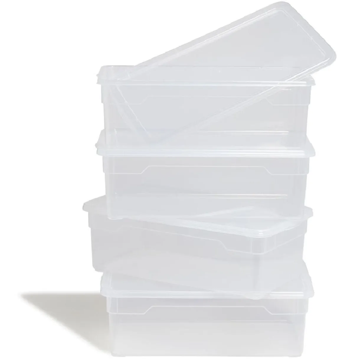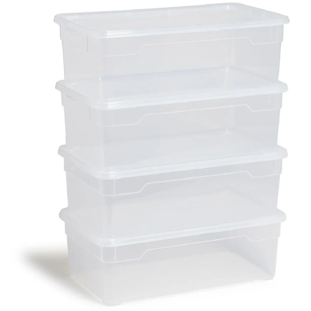 Lot de 4 boîtes de rangement transparentes en plastique de 11L chacune, dotées de couvercles.