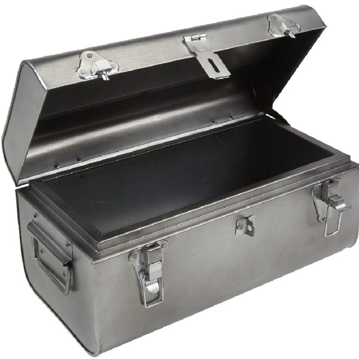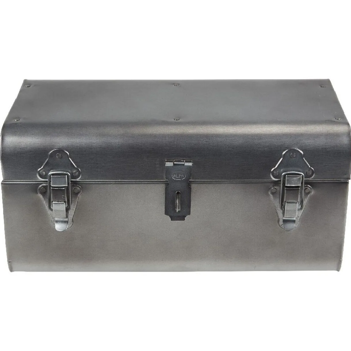 Pratique et déco, optez pour cette malle en fer dotée de deux fermetures à levier à l’ancienne pour ranger vos outils et accessoires de travail.