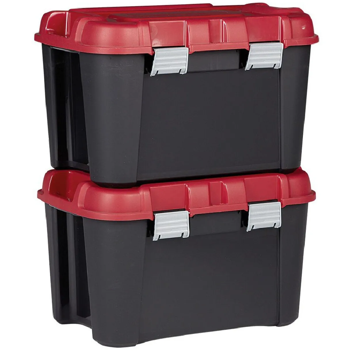 Organisez-vous de façon efficace grâce à ce lot de 2 malles de rangement Totem au coloris rouge et noir.Chaque malle dispose d’une contenance de 60 L et est équipée de :