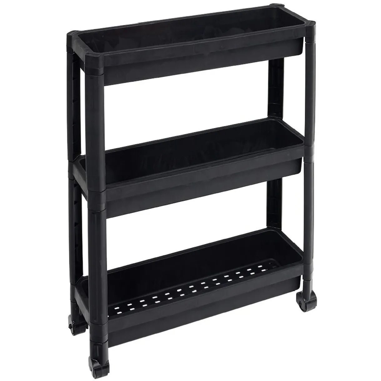 Cet organiseur à 3 niveaux en polypropylène noir est idéal en petit meuble d’appoint pour les affaires qui ne passent pas dans vos tiroirs.