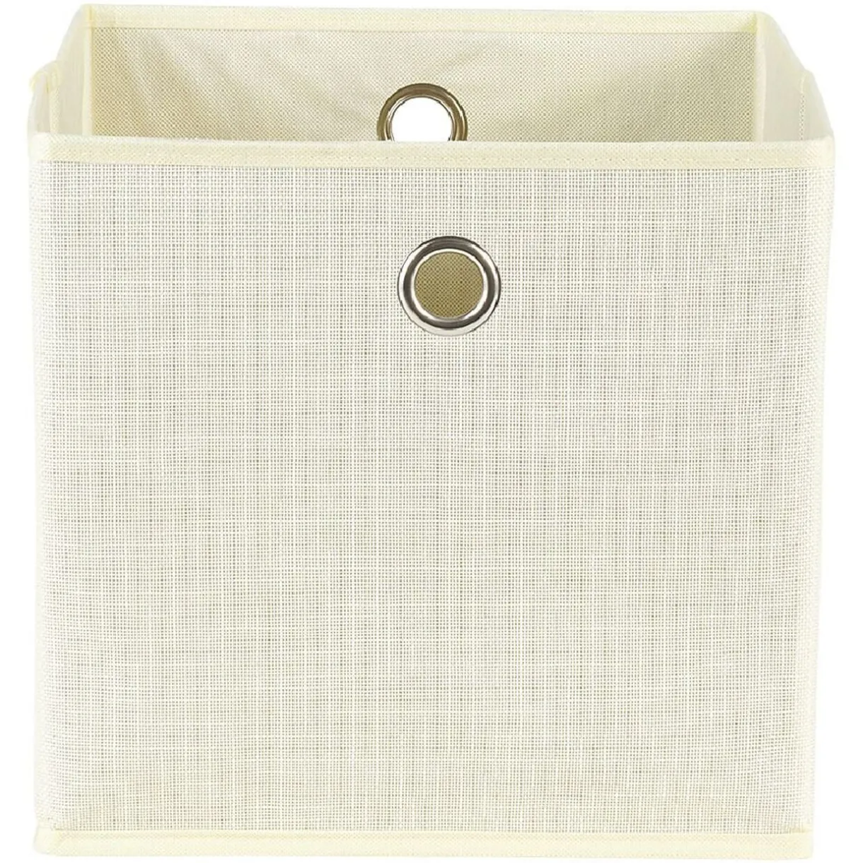 Panier de rangement uni blanc cassé pour l’organisation d’une étagère, pratique dans une chambre d’enfant pour ranger les jouets et autres objets du quotidien.
