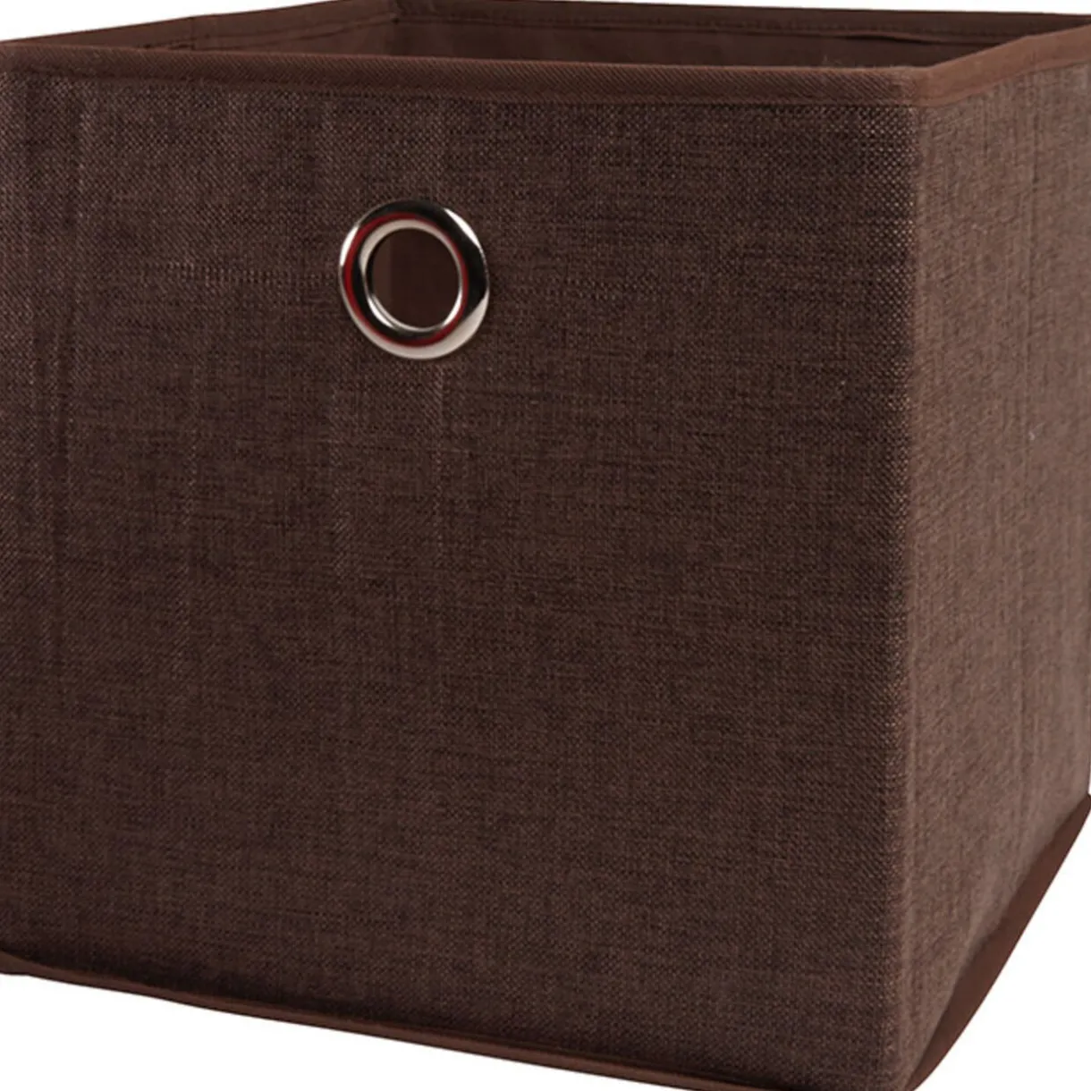 Panier de rangement déco marron pliable, installé dans la chambre d’un enfant ou dans un salon il permet de ranger les jouets de vos enfant ou vos petits objets.