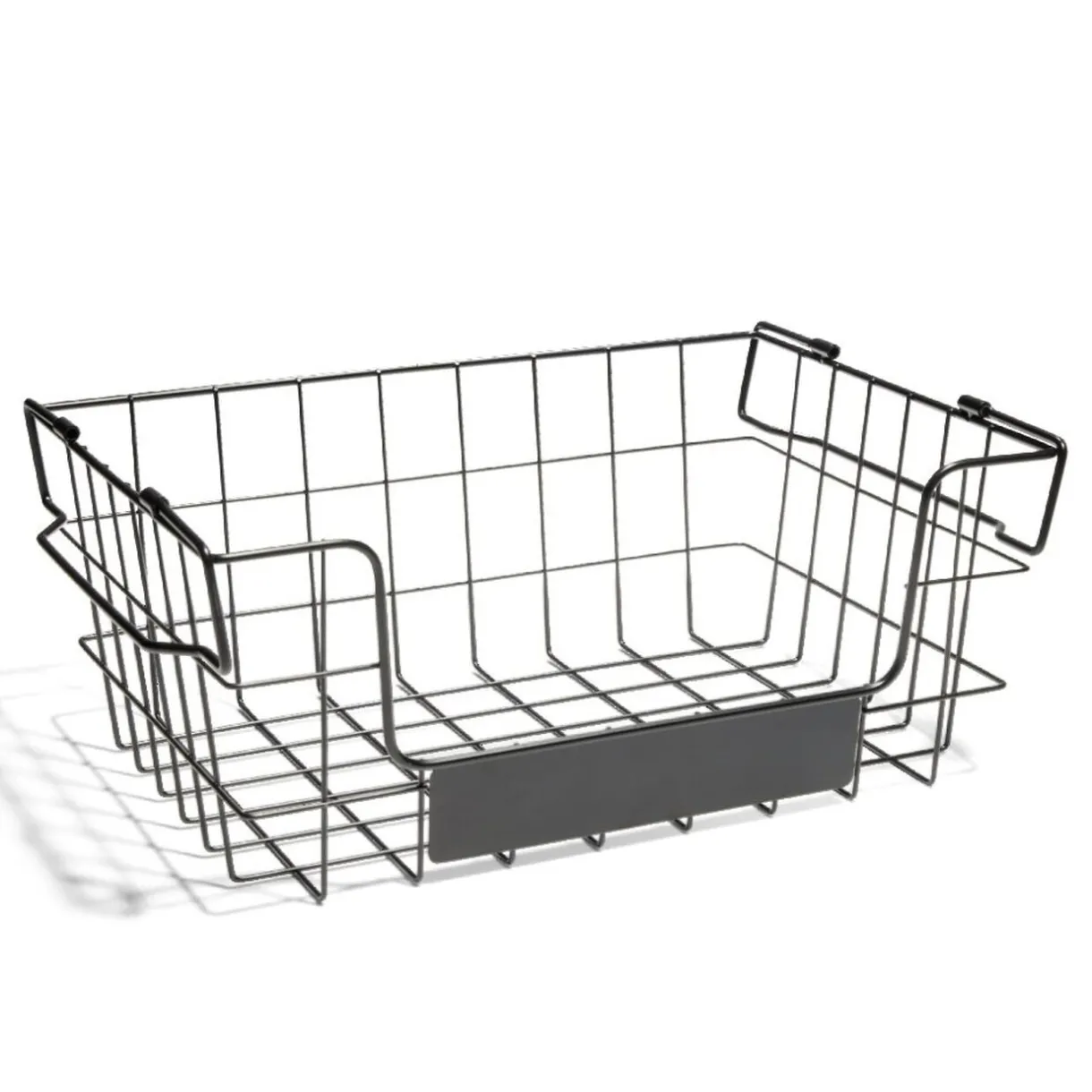Effet grillagé, ce panier superposable en métal noir est idéal pour organiser divers objets tout en économisant de l’espace.