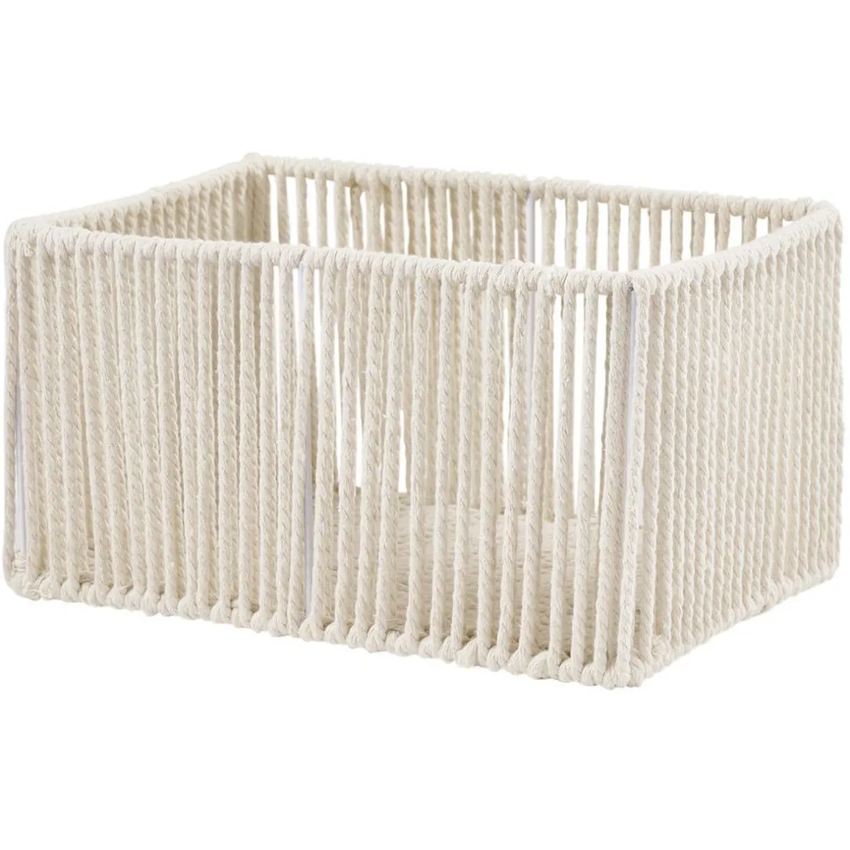 Cette panière ajourée en coton beige apportera une délicate touche déco en plus d’être pratique pour le rangement.