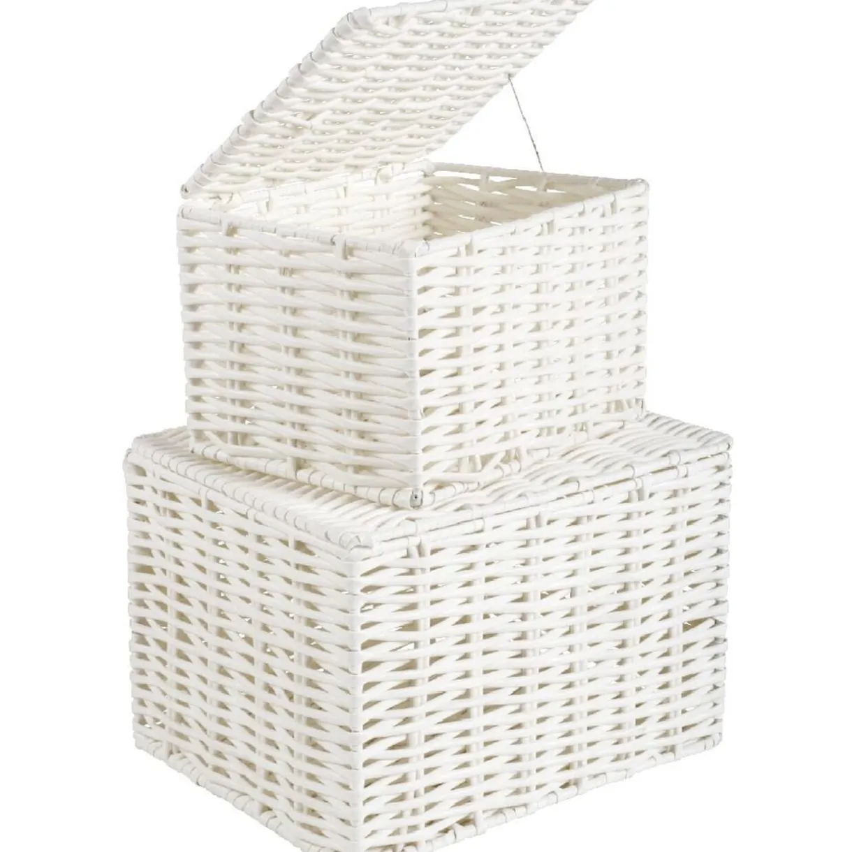 2 panières blanches avec couvercle, dim. 16x12x10 cm et 20x16x13 cm, plastique.