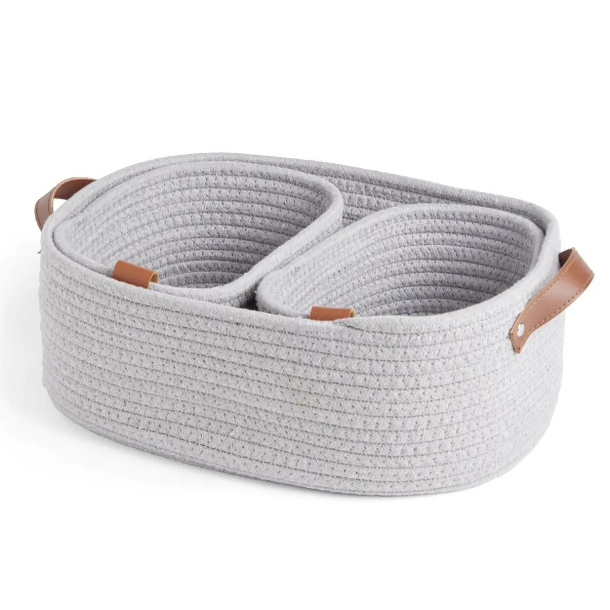 Ajoutez une touche de charme rustique et de fonctionnalité à votre maison avec cette petite panière de rangement grise en coton tressé.