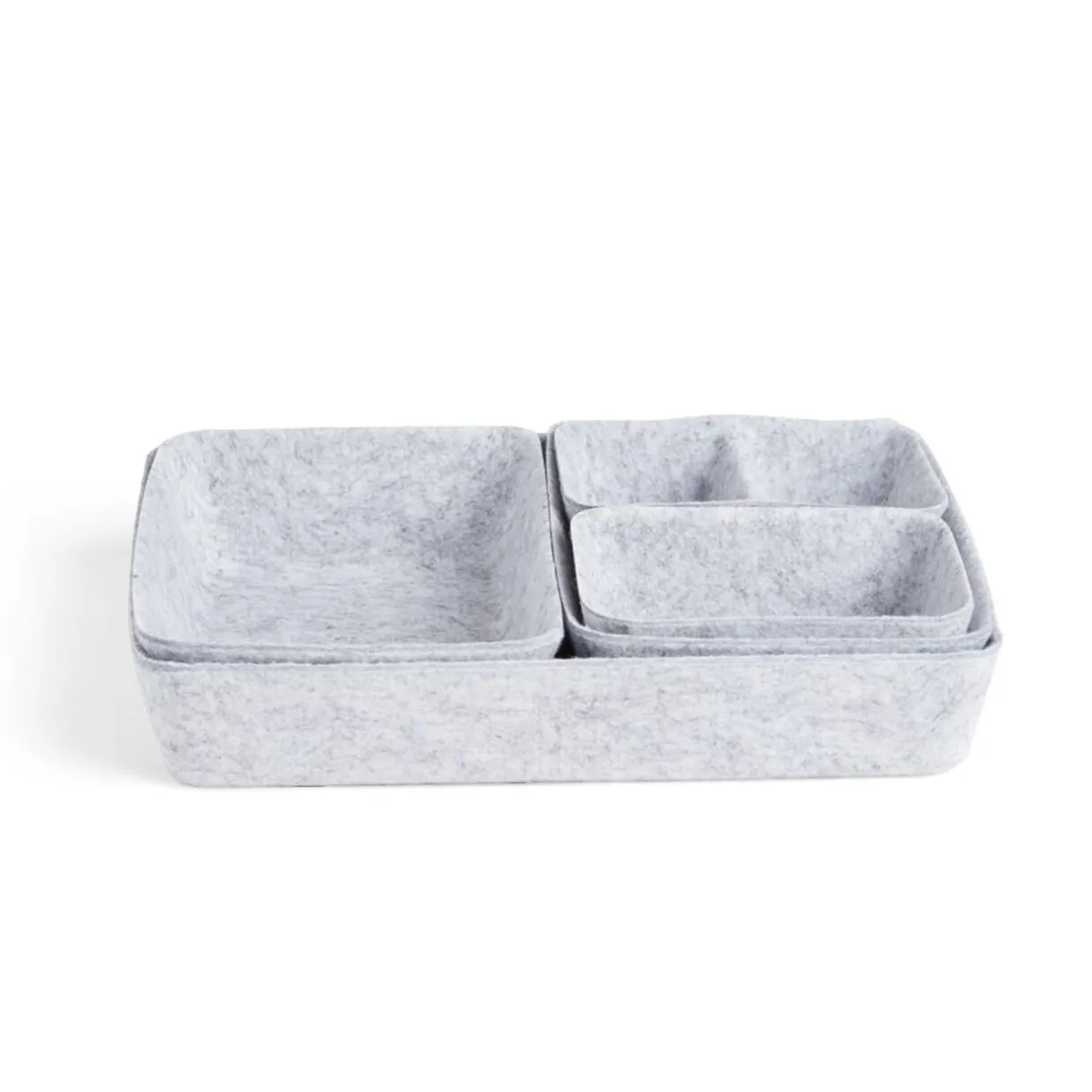 Conçue en feutrine douce, ces panières allient fonctionnalité et design moderne. La texture en feutrine offre une apparence chic et un toucher agréable pour accueillir divers objets et accessoires. Ce lot est composé de 5 tailles différentes.