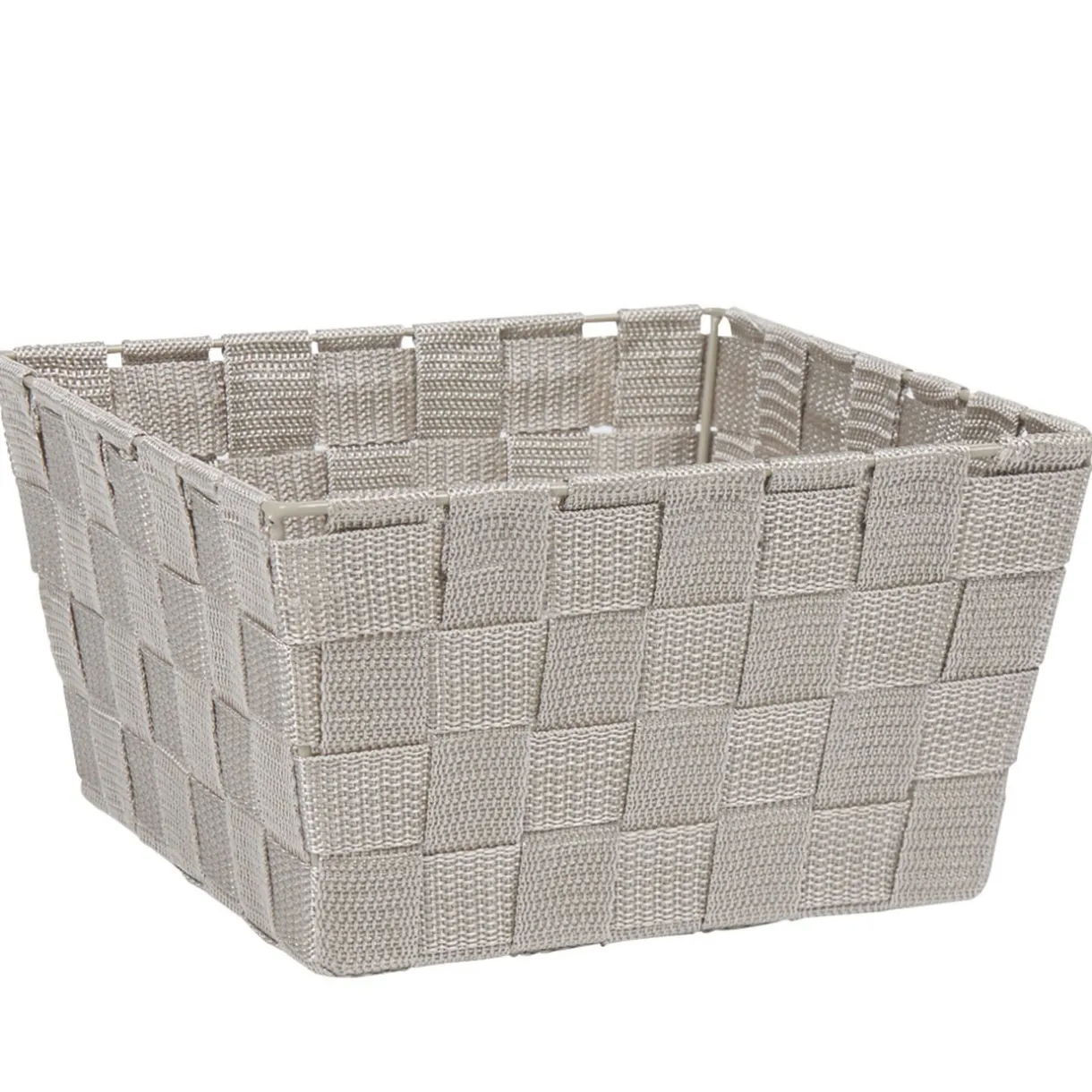 Panière de rangement grise clair tressée, taille L, nylon.