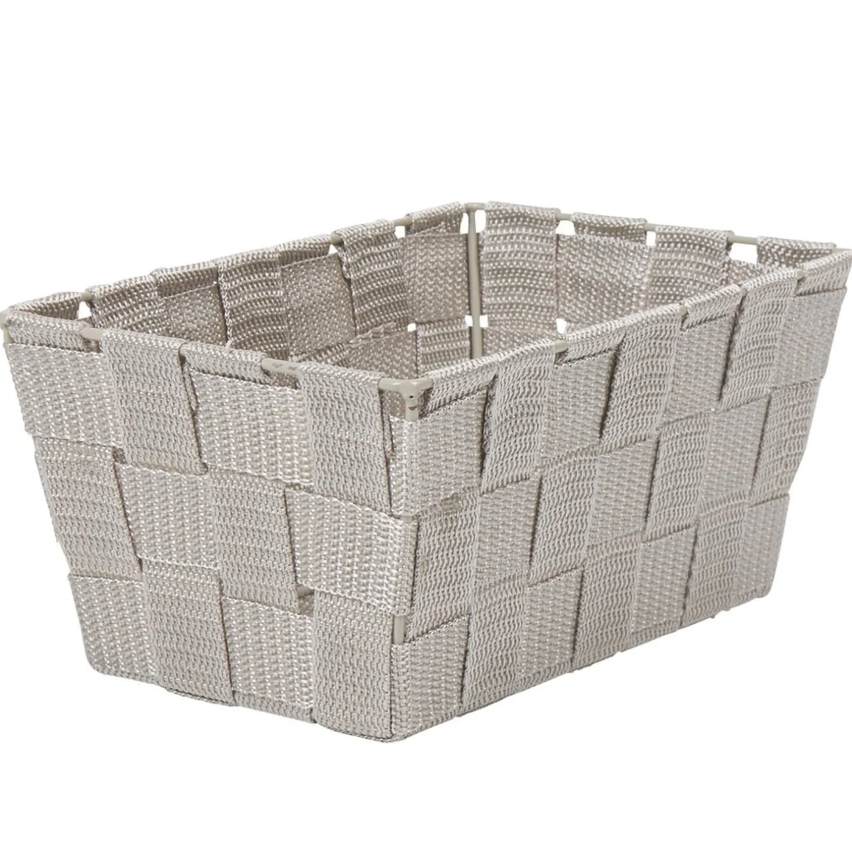 Panière de rangement grise clair tressée, taille S, nylon.