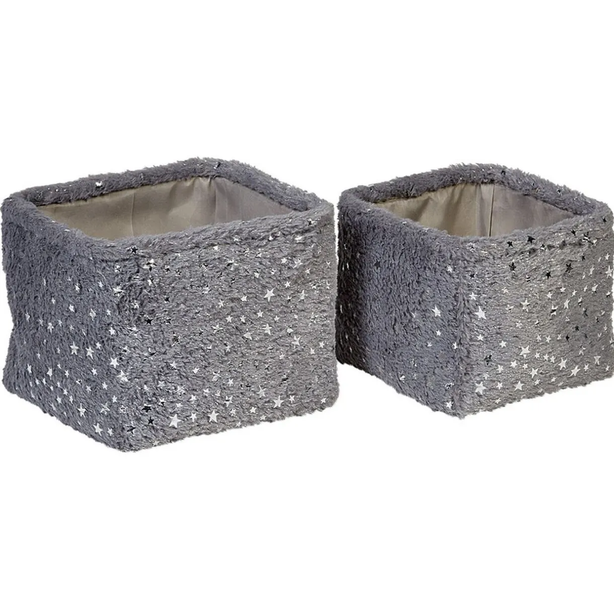 Lot de 2 panières de rangement à l’effet fourrure décoré d’une pluie détoiles scintillantes.