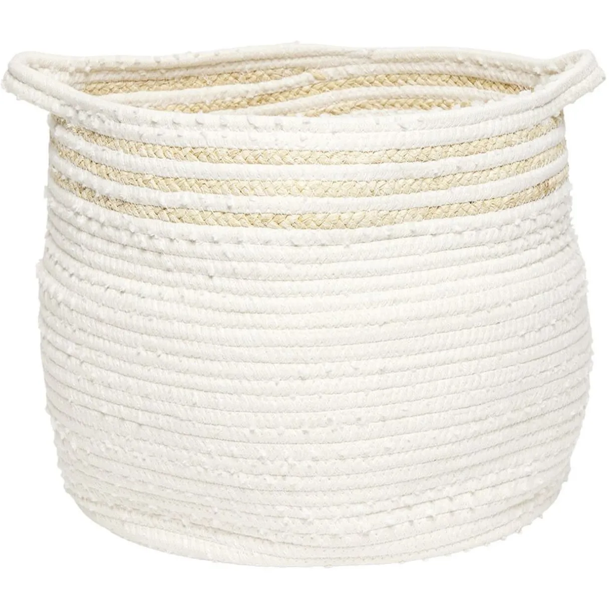 Grande panière en jute et coton blanc avec anses.