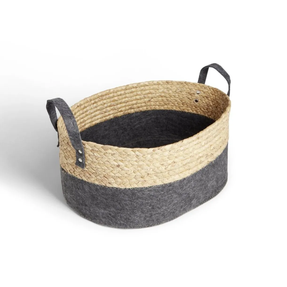 Découvrez l’alliance du charme naturel et l’élégance du gris foncé avec cette panière ovale en feutrine et jacinthe d’eau.