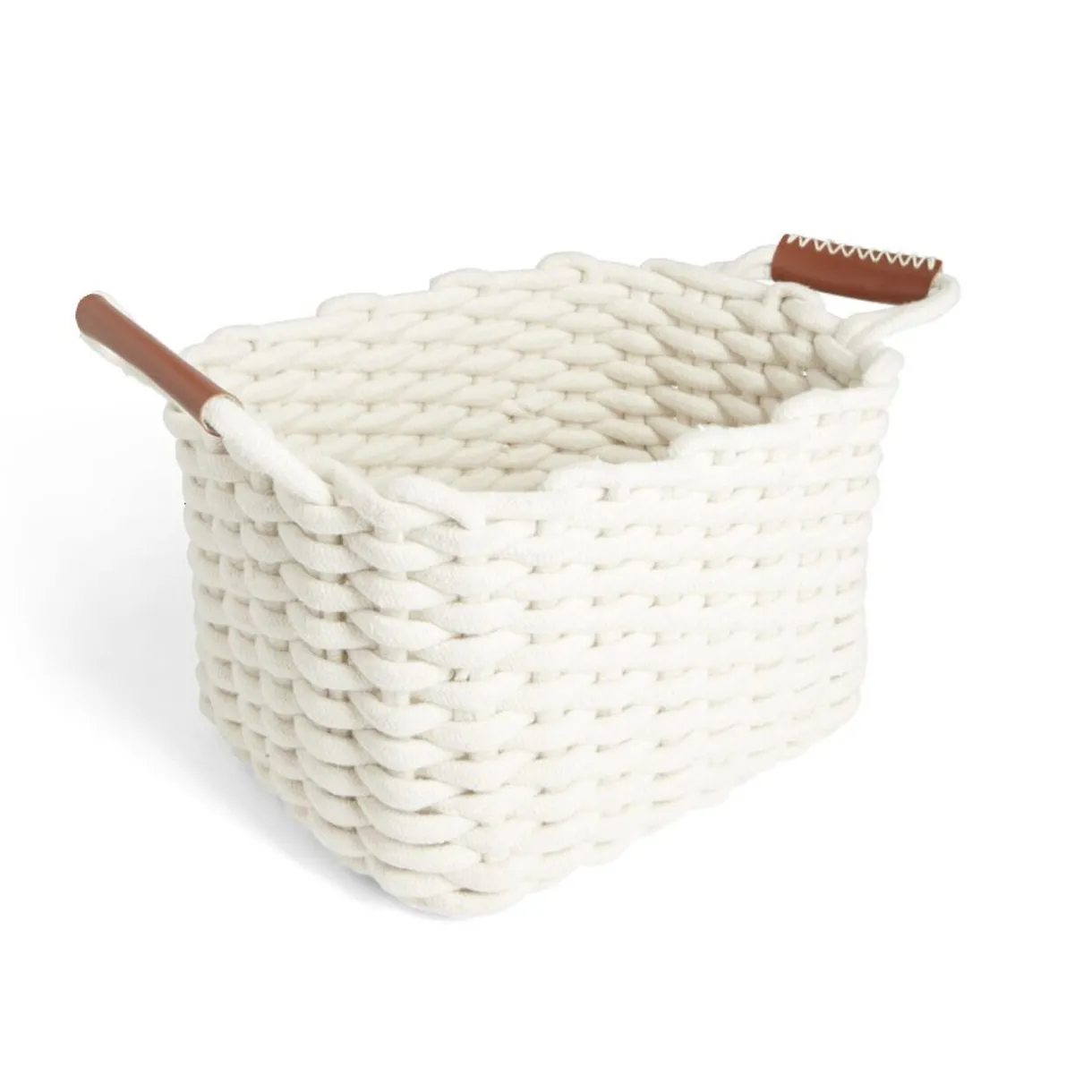 Transformez votre espace avec cette grande panière en tricot de coton blanc.