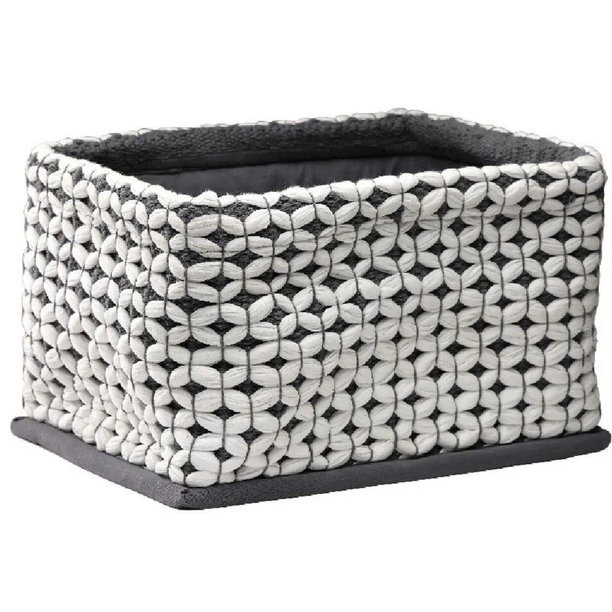 Misez sur cette panière en tissu crocheté bicolore blanc/gris ou blanc/rouge brique pour aménager et décorer votre intérieur.