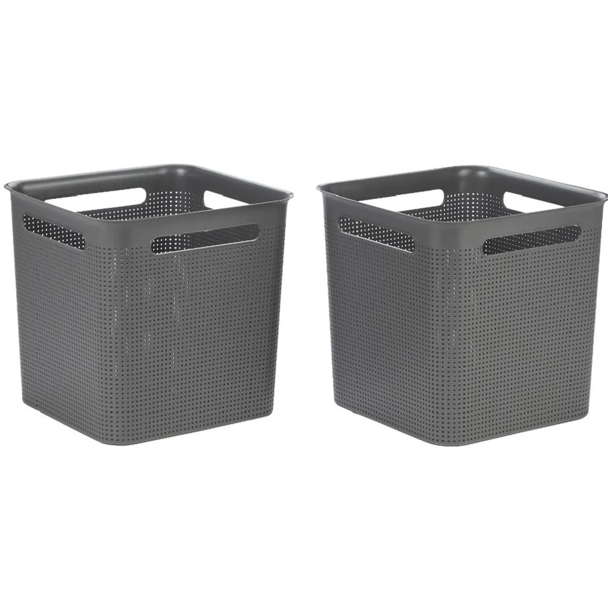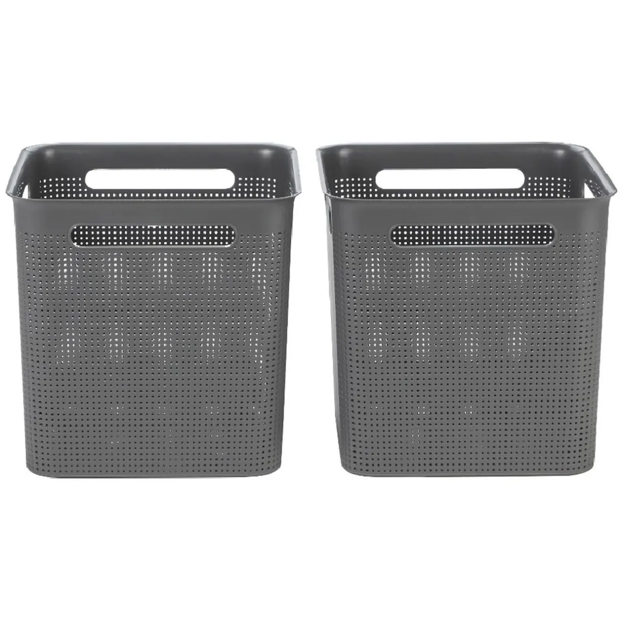 Lot de deux paniers gris design perforé, d’une capacité de 18 litres chacune. Idéals essentiellement pour le linge.