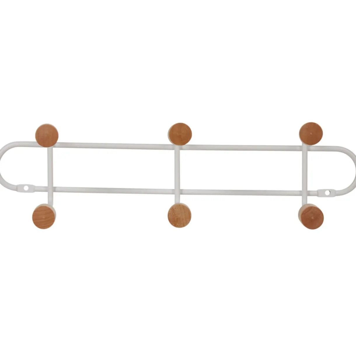 Optez pour un design sobre à la touche naturelle avec cette patère murale blanche en métal et ses 6 crochets en bois. Fixation simple et rapide.