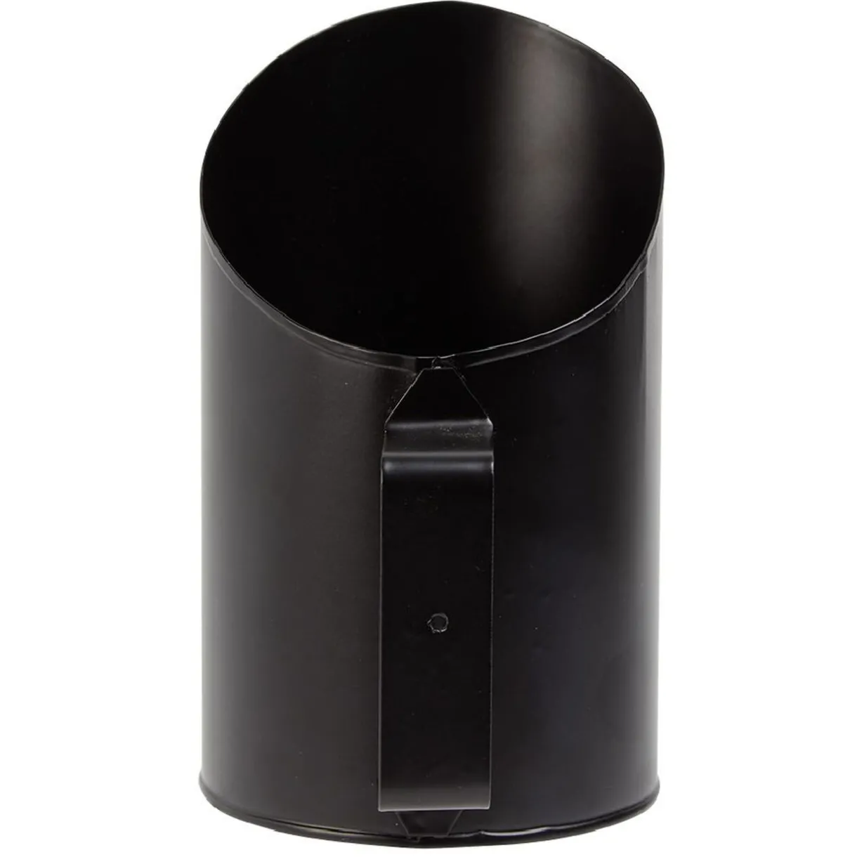 Pelle en acier noir pour le remplissage des pellets ou granulées de bois dans le réservoir du poêle.